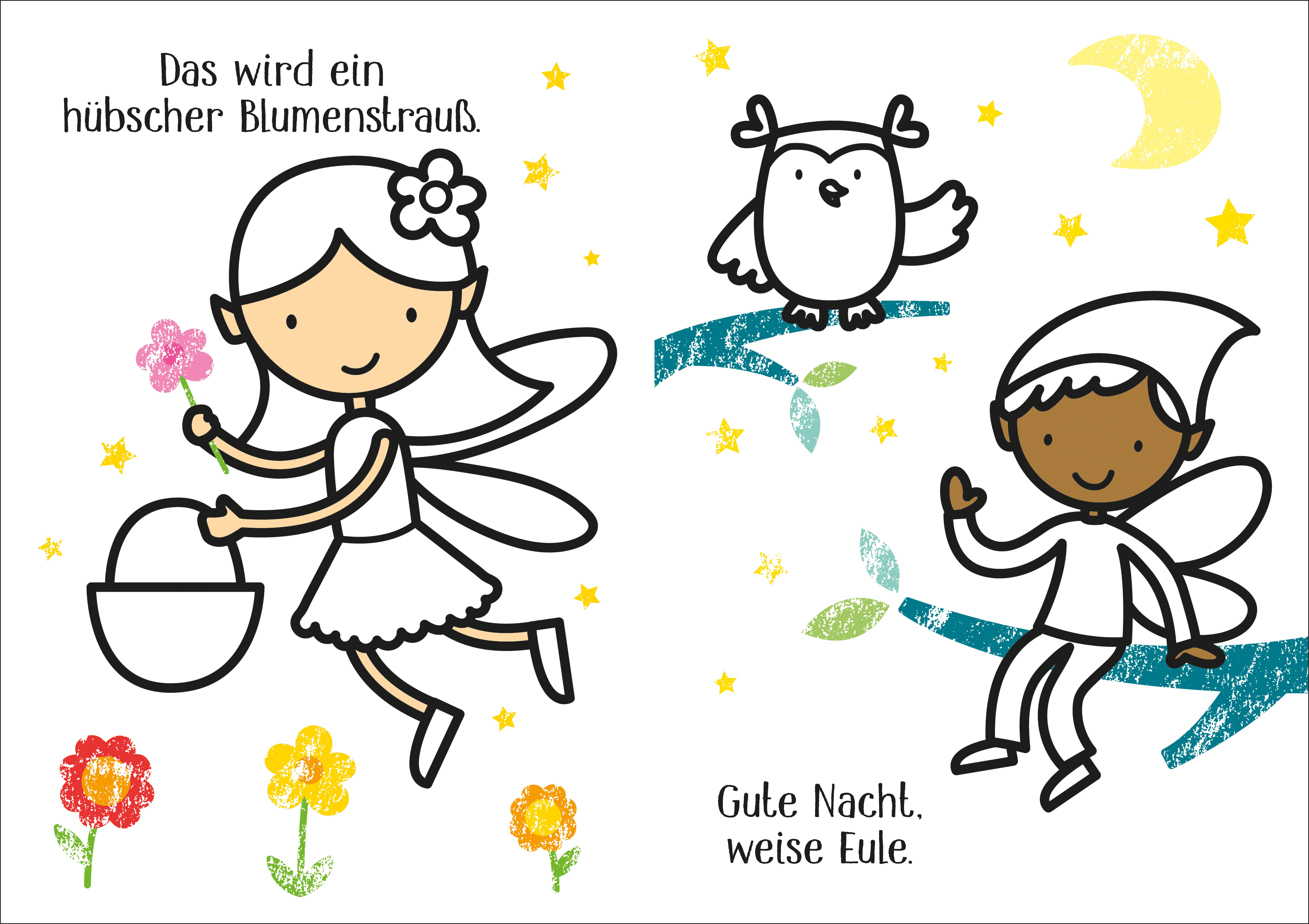 Dank breiter Konturen und einfacher Formen sind diese Malvorlagen perfekt für die ersten Ausmalversuche geeignet. So üben kleine Künstlerinnen und Künstler spielerisch den sicheren Umgang mit dem Stift! Ausmalvergnügen im Feenreich Dank breiter Konturen und ei...