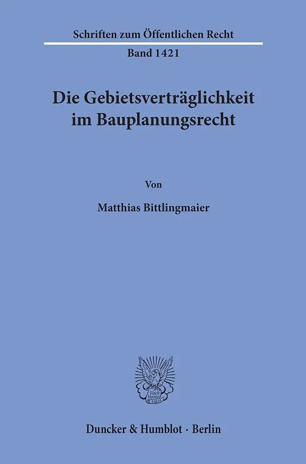 Die Arbeit untersucht die Rechtsfigur der Gebietsverträglichkeit im Bauplanungsrecht. Ihre historische Entwicklung wird nachgezeichnet, der Begriff der Verträglichkeit in anderen Rechtsgebieten wird zum Vergleich beleuchtet. Die Gebietsverträglichkeit wird von...