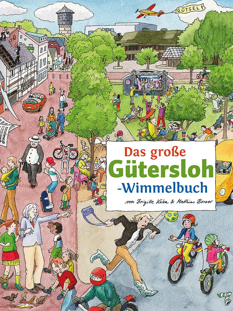 Kennst du Gütersloh? Dann komm doch mit auf eine Wimmelreise durch die Stadt: vom Dreiecksplatz bis zur Weberei, in den Mohns Park oder raus zu Mühlenstroth, an einem Wintertag auf die Eiswiese und im Sommer ins Parkbad. Oder einfach mal zum Wochenmarkt auf de...Kennst du Gütersloh? Dann komm doch mit auf eine Wimmelreise durch die Stadt: vom Dreiecksplatz bis zur Weberei, in den Mohns Park oder raus zu Mühlenstroth, an einem Wintertag auf die Eiswiese und im Sommer ins Parkbad. Oder einfach mal zum Wochenmarkt auf den Berliner Platz. Findest du im Gewimmel überall dieselben Leute wieder: den alten Mann mit Hut oder die Dame mit Hündchen? Den Papa mit Baby oder die Familie von Ben und Mila? Die Mutter mit Tochter im Partnerlook oder den fiesen Dieb, der Oma ihre Handtasche geklaut hat? Außerdem verstecken sich auf jedem Bild eine kleine Maus und eine Schnecke. Und weil wir in Gütsel sind, gibt's immer auch ein Buch und eine Waschmaschine zu finden. Und vieles mehr. Viel Spaß beim Wimmeln! +++ tpk-Wimmelbücher Die erfolgreiche Reihe der handgezeichneten tpk-Städte-Wimmelbücher umfasst bislang rund 20 Titel. Jeweils sieben markante Orte in einer Stadt werden gut wiedererkennbar und prall mit Leben gefüllt dargestellt, zahlreiche Suchaufgaben für Kinder und Vorleser*innen kommen dazu. Mit viel Herz und Verstand setzen die Illustratorinnen Brigitte Kuka und Carmen Hochmann das tpk-Wimmelkonzept um und schaffen mit Stift und Pinsel echte Aquarell-Ansichten; jedes Wimmelbuch hat dabei ganz viel Seele und Lokalkolorit. BIELEFELD-Wimmelbuch: 978-3-936359-56-5 BONN-Wimmelbuch: 978-3-936359-69-5 CUXHAVEN-Wimmelbuch: 978-3-936359-90-9 DORTMUND-Wimmelbuch: 978-3-936359-76-3 DUISBURG-Wimmelbuch: 978-3-936359-77-0 DÜSSELDORF-Wimmelbuch: 978-3-936359-82-4 ESSEN-Wimmelbuch: 978-3-936359-83-1 GÖTTINGEN-Wimmelbuch: 978-3-936359-95-4 GÜTERSLOH-Wimmelbuch: 978-3-936359-72-5 HANNOVER-Wimmelbuch: 978-3-936359-70-1 KASSEL-Wimmelbuch: 978-3-936359-63-3 KÖLN-Wimmelbuch: 978-3-936359-94-7 LANGEOOG-Wimmelbuch: 978-3-936359-67-1 MARBURG-Wimmelbuch: 978-3-936359-98-5 MÜNSTER-Wimmelbuch: 978-3-936359-85-5 OLDENBURG-Wimmelbuch: 978-3-936359-99-2 PADERBORN-Wimmelbuch: 978-3-936359-62-6 ST. PETER-ORDING-Wimmelbuch: 978-3-910490-03-1 WUPPERTAL-Wimmelbuch: 978-3-936359-73-2