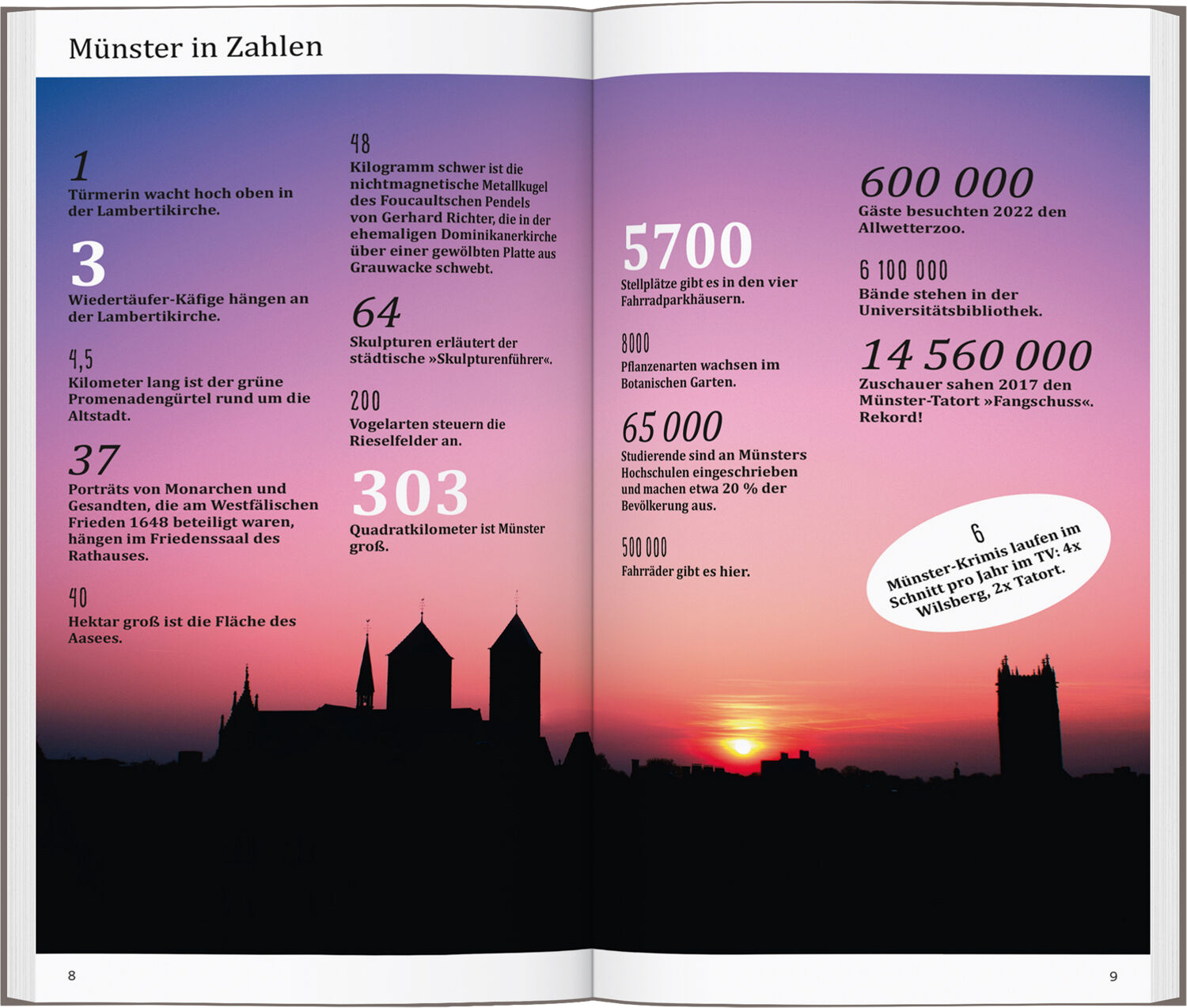 Großstädtisches Cityleben und ländliche Natur schätzen die Münsteraner gleichermaßen, in ihrer Radel- und Universitätsstadt mit der charmanten Mischung aus studentischer Dynamik und Traditionsbewusstsein, historischer Postkartenidylle und zeitgenössischen Akz...