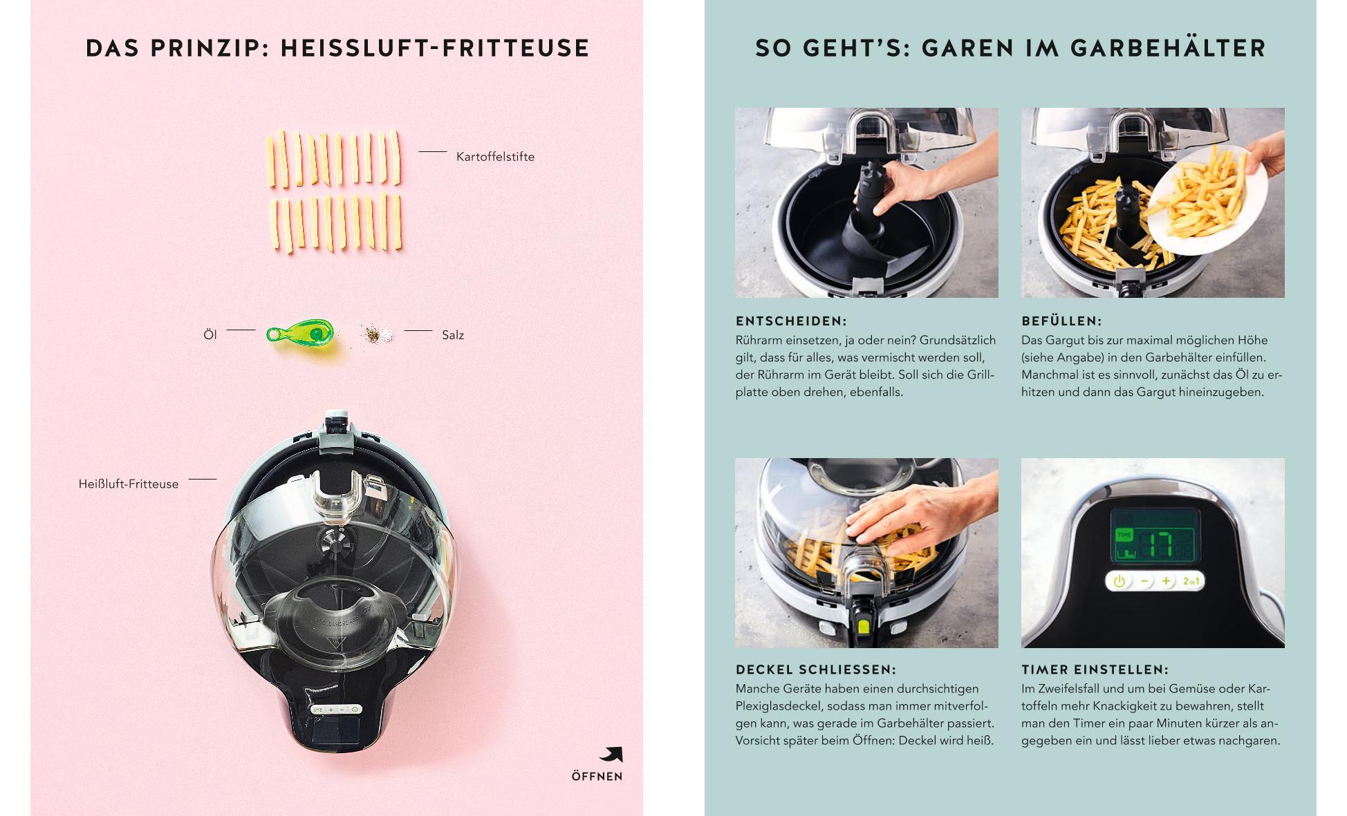 Frittieren, Backen, Braten und Grillen fast ohne Fett hier kommen die besten GU-Rezepte für die Heißluft-Fritteuse! Knusprig Frittiertes das geht nur im Duo Fritteuse plus jede Menge Fett? Falsch! Mit der revolutionären Heißluft-Fritteuse können Pommes, Schnit...