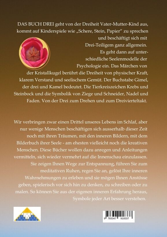 DAS BUCH DREI behandelt Dreiheiten jeglicher Art, die Dreiteilung in der Anthroposophie, bei den hinduistischen Gottheiten, die Dreieinigkeit, dreizählige Pflanzen, dreimaliges Ansprechen, dreifache Affirmationen u.s.w. Die Buchstaben I-A-O, die Dreier im Taro...