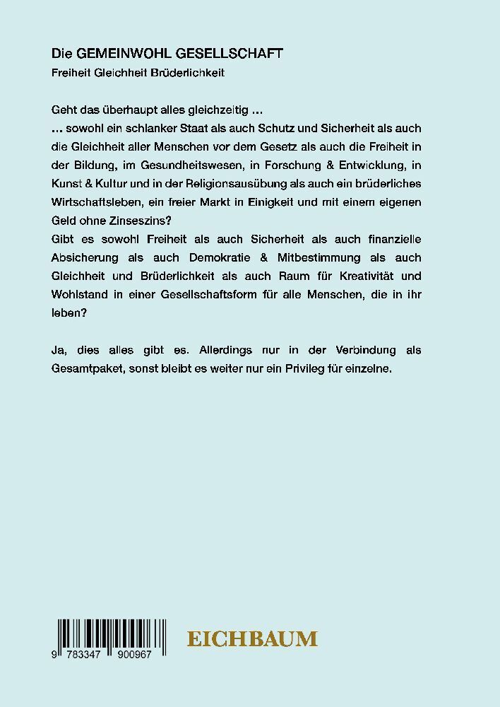Die GEMEINWOHL GESELLSCHAFT Freiheit Gleichheit Brüderlichkeit Geht das überhaupt alles gleichzeitig sowohl ein schlanker Staat als auch Schutz und Sicherheit als auch die Gleichheit aller Menschen vor dem Gesetz als auch die Freiheit in der Bildung, im Gesund...