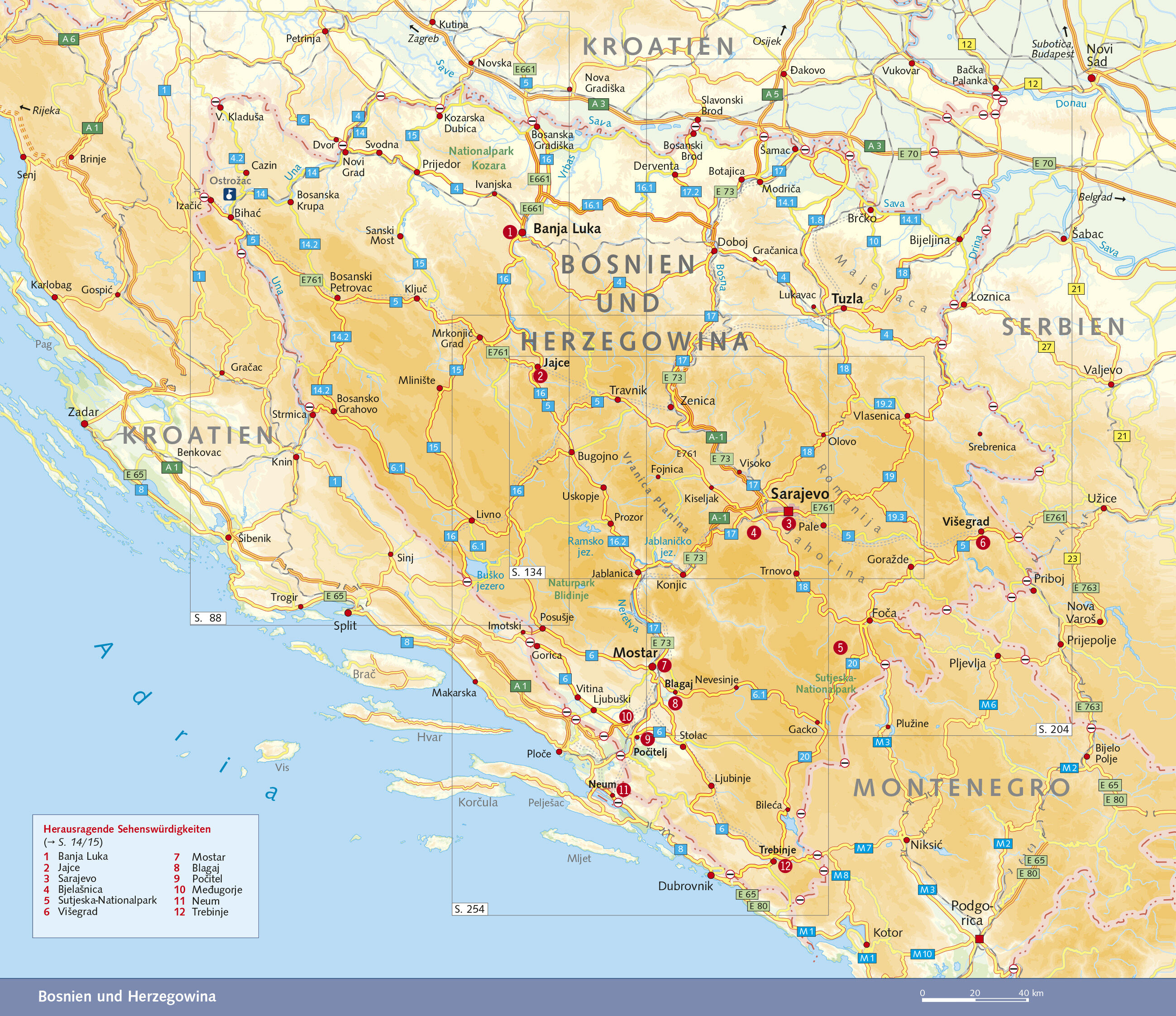 Die bunte Altstadt von Sarajevo, wo Okzident und Orient aufeinandertreffen, die Kulturmetropole Banja Luka und der Wallfahrtsort Medugorje gehören zu den herausragenden Attraktionen. Die seit dem Bosnienkrieg geteilte Stadt Mostar mit der Alten Brücke über die Neretva ist seit 2005 UNESCO-Welterbe. Autor Marko Plenik, dessen Vaterfamilie aus dem ehemaligen Jugoslawien stammt, kennt das Land von Kindesbeinen an. Alle Regionen, Orte und Sehenswürdigkeiten werden von ihm umfassend beschrieben, von Neum an der Adria bis zu den Skigebieten in der Bjelanica, wo 1984 die Olympischen Winterspiele stattfanden. Co-Autor Matthias Jacob hat alles Wissenswerte topaktuell auf den neuesten Stand gebracht.
