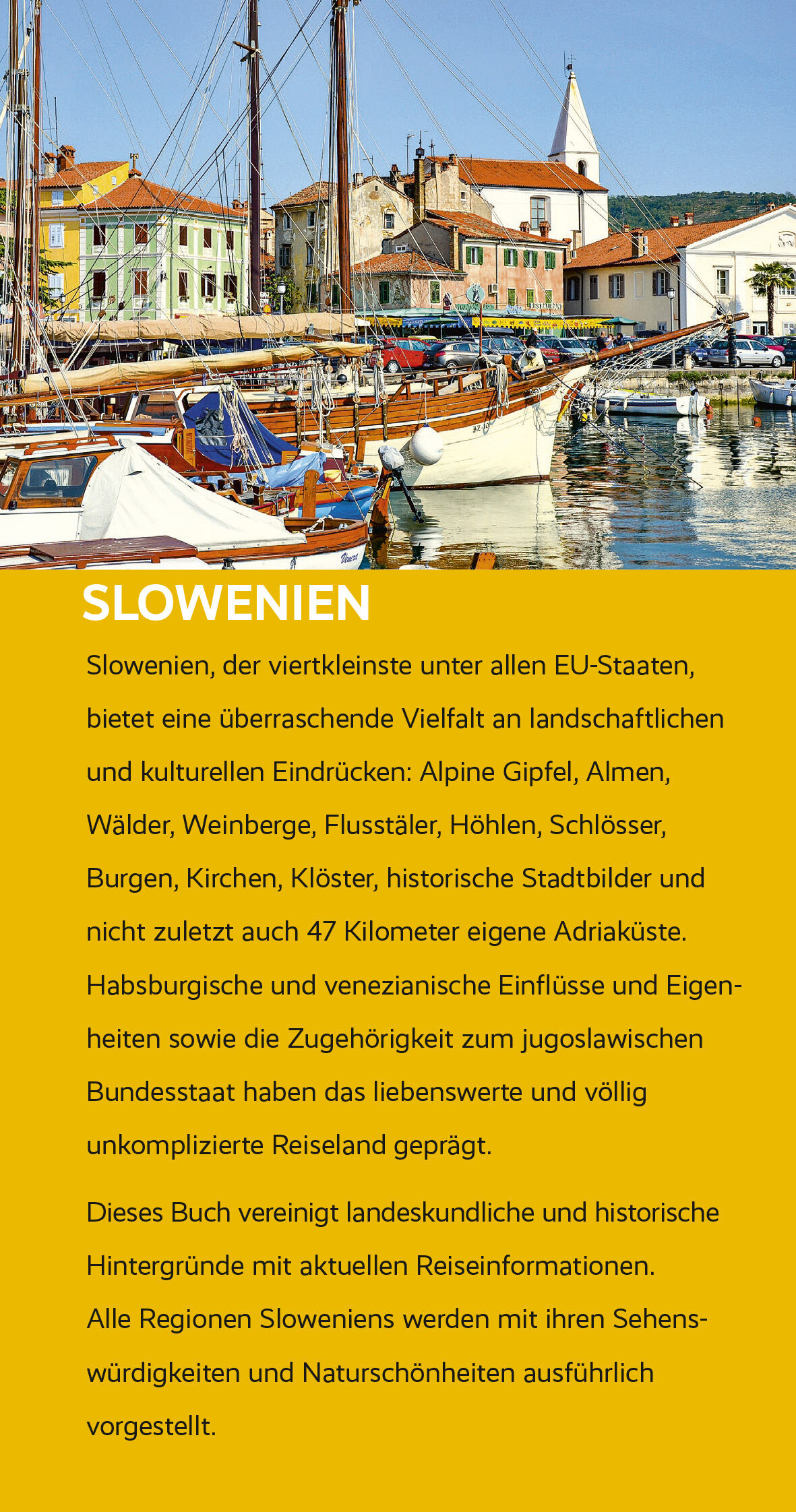 Slowenien ist klein. Darüber kursieren zahlreiche Witze: Wenn man sich in Maribor einen Mantel anziehe, reiche der eine Ärmel bereits bis Österreich und der andere befinde sich in Kroatien, lautet einer. Über die Kleinheit Sloweniens schrieb der Lyriker Tomaz Salamun (1941-2014) ein legendäres Gedicht: "Nick nicht ein im/Zug Venedig -/Wien, lieber/Leser. Slowenien ist so/unscheinbar, du könntest es/verfehlen". Oberflächlich betrachtet ist Slowenien tatsächlich wenig spektakulär. Kaum einer kennt es wirklich und noch immer kommt es in den Medien zu Verwechslungen mit der Slowakei oder gar der kroatischen Region Slawonien. Nur wenige Reisende machen auf ihrer Fahrt an die kroatische Adria Halt in Slowenien, das in manchem Österreich ähnelt. Slowenien ist nicht groß, aber wirklich reich an Besonderheiten. Die geringe Fläche dieses noch mitteleuropäisch geprägten Landes suggeriert Übersichtlichkeit und Vertrautheit und doch findet sich hier eine überraschende Vielfalt unterschiedlichster Landschaften: Die schroffen Bergmassive der Alpen mit ihren Seen, das karge Karstland, die mediterrane Adriaküste, die Mittelgebirge mit wald- und rebenbewachsenen Hügellandschaften, die mit Kirchen, Dörfern, Schlössern und Winzerhäusern übersät sind, sowie die weitausgedehnten Flächen der Pannonischen Tiefebene. Slowenien ist noch Mitteleuropa und zugleich schon ein Mittelmeeranrainer. Auch die kulturellen Einflüsse sind mannigfaltig und vielschichtig. Über 600 Jahre gehörte Slowenien zu Österreich-Ungarn. Die Habsburger Monarchie ist - besonders in Ljubljana und Maribor - noch lebendig in der Architektur mit herausragenden Zeugnissen des Barocks und des Jugendstils und prägt bis heute Lebensart und Essenskultur. Der Einfluss des deutschsprachigen Kulturraums ist auch an zahlreichen Lehnwörtern und "Germanismen" im Slowenischen zu erkennen. Italienisches Flair spürt man dagegen in den Küstenorten, wo die Venezianer mit Romanik, Blumengotik und Renaissance deutliche Spuren hinterlassen haben. Die Nähe zu Italien hat auch auf Sprache, Musik und Küche dieses Teils Sloweniens eingewirkt. Dagegen sind im Nordosten (Prekmurje und Pomurje), der lange zum Königreich Ungarn gehört hat, ungarische Lehnwörter sehr verbreitet. Viele Häuser haben wie im Nachbarland Ungarn ein Strohdach, und es gibt eine besondere slowenische Gulaschvariante, den Bograc. Aber trotz der jahrhundertelangen Fremdherrschaft haben sich die Slowenen ihre Sprache und Volkskultur bewahrt und so ist Slowenien schließlich auch ein slawisches Land. Mit seinen südslawischen Nachbarn ist es durch die Verwandtschaft der Sprachen, aber auch durch die spannungsvolle Geschichte verbunden. Immerhin 89 Jahre lebten die Slowenen im 20. Jahrhundert mit anderen Südslawen in gemeinsamen "jugoslawischen" Staatengebilden, die unter verschiedenen Namen firmierten.Zu den vielen Überraschungen, die das Land bereithält, gehören exquisite Weine, feine Schokoladen und der berühmte Honig der Krainer Biene. Auch wer Freude an Handwerk und Kunsthandwerk hat, wird hier fündig: In zahlreichen Werkstätten wird die Tradition des Töpferns, des Korbflechtens und der Holzbearbeitung lebendig gehalten. Kurzum: S…