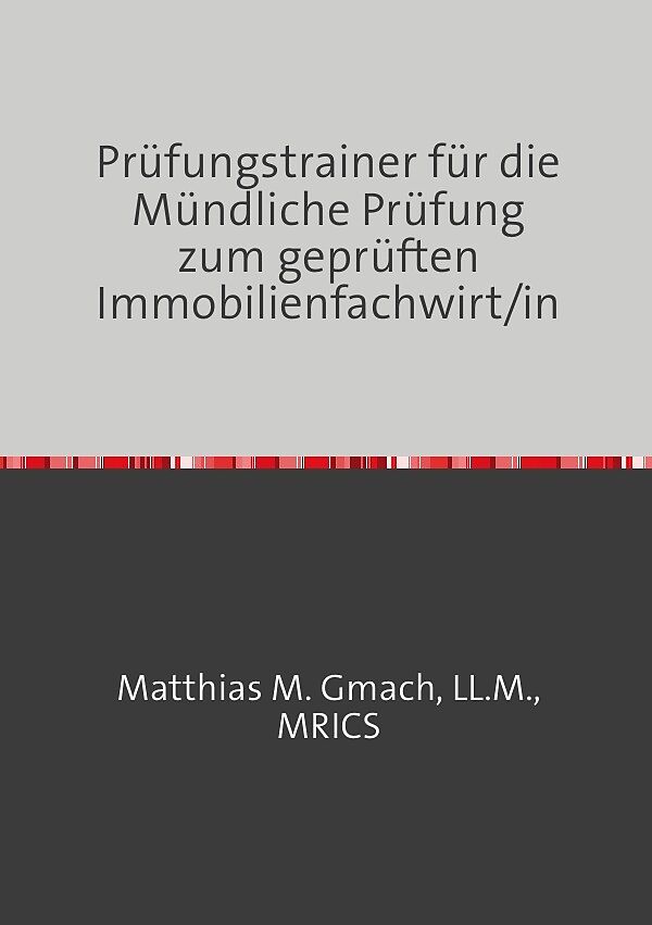 Dieser Prüfungstrainer begleitet Sie bei Ihrer Prüfungsvorbereitung für eine erfolgreiche Immobilienfachwirtprüfung. Autorentext Matthias M. Gmach ist Chartered Surveyor (MRICS), LL.M. Immobilien- und Kapitalmarktrecht (Universität Münster), Bachelor of Arts (...