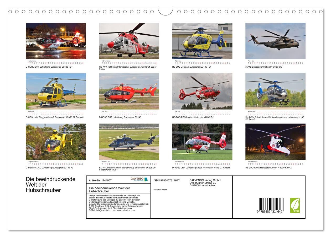 Der Kalender zeigt eine große Vielfalt der unterschiedlichsten Hubschraubertypen in ihren Einsatzgebieten. Die Hubschrauber haben verschiedenste Lackierungen und spiegeln die beindruckende Welt der Hubschrauber in jedem Monat auf unterschiedlichste Weise wiede...