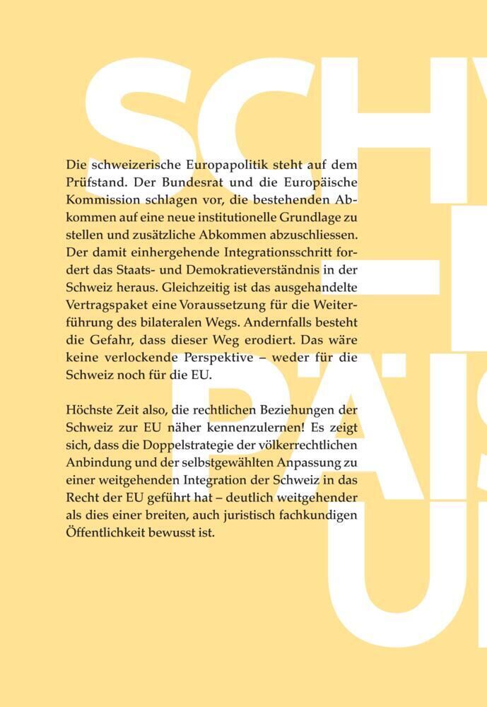 Die schweizerische Europapolitik steht auf dem Prufstand. Der Bundesrat und die Europaische Kommission schlagen vor, die bestehenden Abkommen auf eine neue institutionelle Grundlage zu stellen und zusatzliche Abkommen abzuschliessen. Der damit einhergehende In...