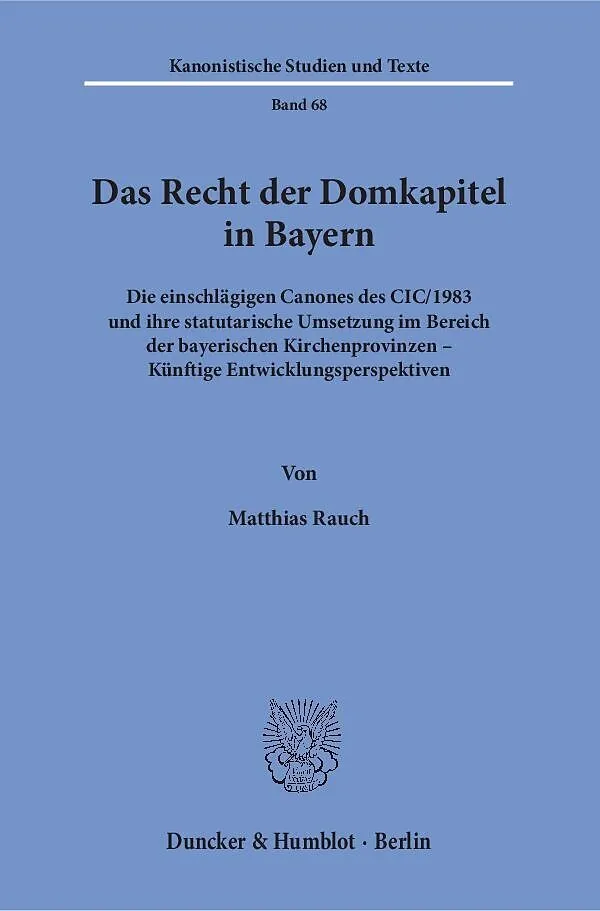 Die Domkapitel sind traditionell sehr bedeutsame kirchliche Einrichtungen. In den beiden bayerischen Kirchenprovinzen leisten sie bis heute wesentliche Unterstützung ihres Bischofs bei der Leitung und Verwaltung der Diözese. Das Buch stellt die einschlägigen k...