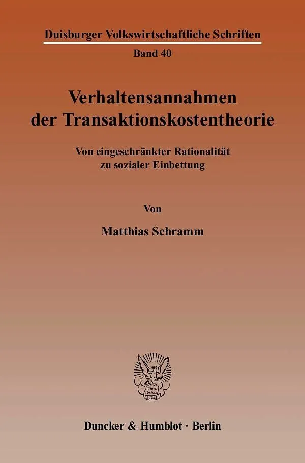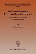 Die Neue Institutionenökonomie gilt als zweites großes Paradigma der ökonomischen Forschung. Als Grundstein dieses Theoriegebäudes wurden Verhaltensannahmen eingeführt, die Generationen von Wirtschaftswissenschaftlern rezipierten - so die Ergänzungen des homo ...