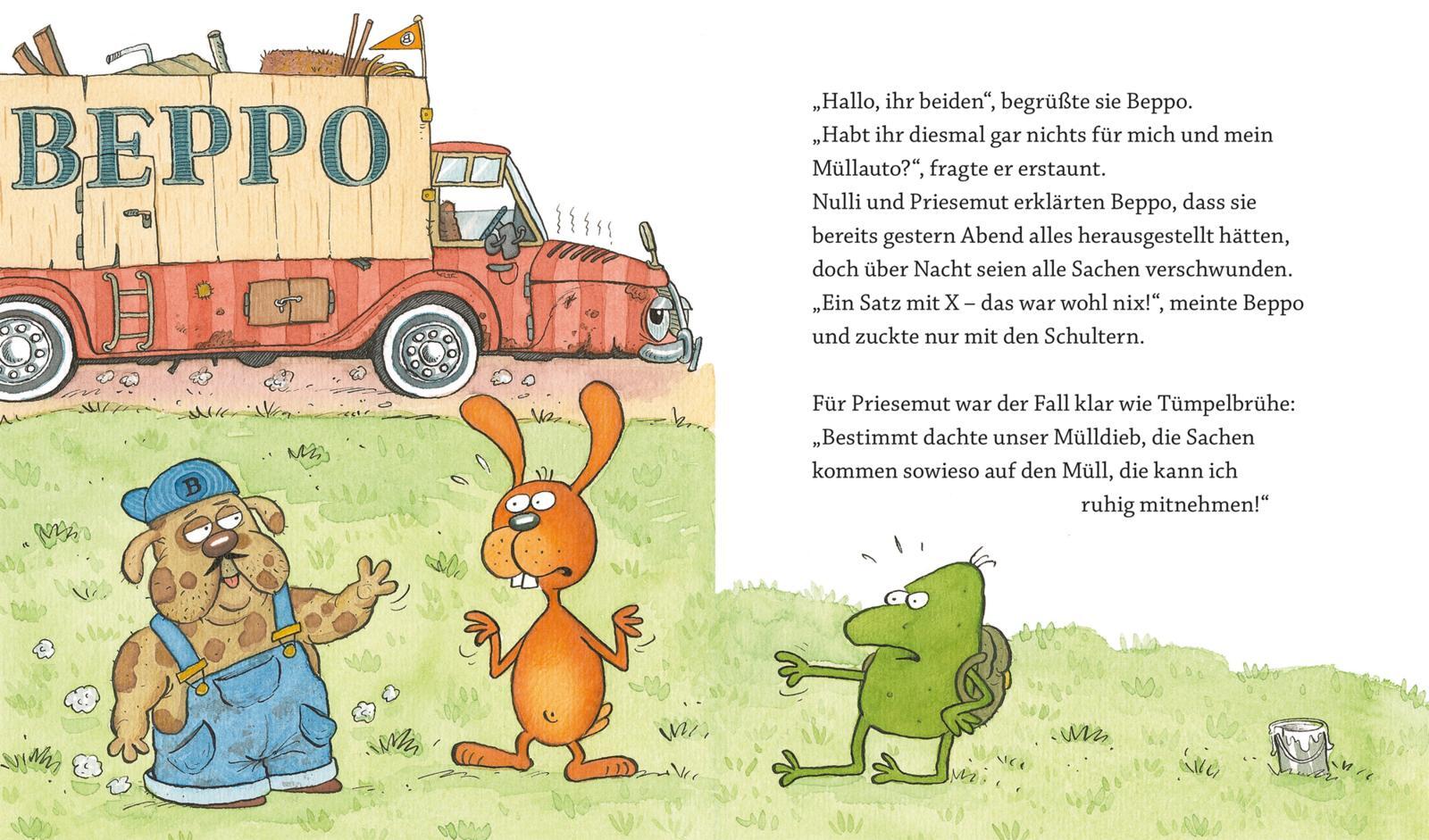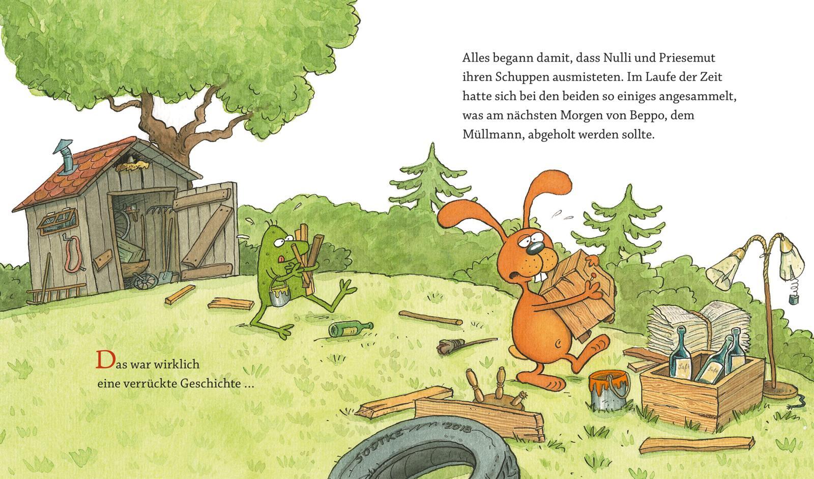 Nulli und Priesemut haben ausgemistet und ihren Müll zum Abholen an den Weg gestellt. Doch am nächsten Morgen sind die Sachen verschwunden ... Sie folgen den Spuren und finden nach und nach ihren Abfall wieder. Doch bis sie die Ursache herausgefunden haben un...