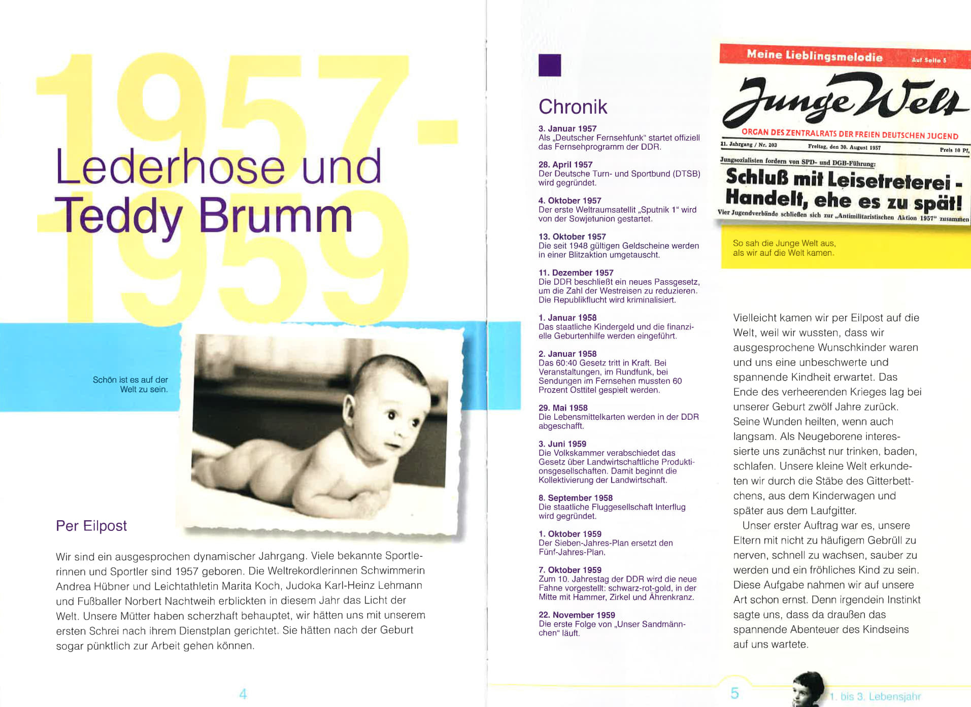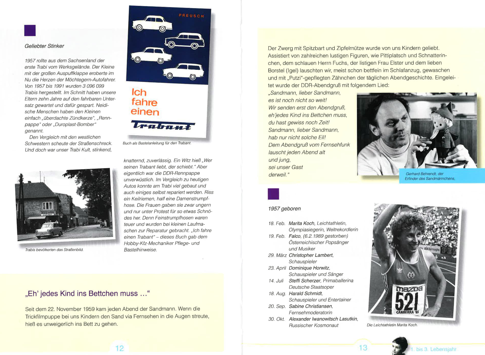 Aufgeregt und erwartungsvoll, so blickten wir damals in die Zukunft! Erinnern Sie sich mit uns an die ersten 18 Lebensjahre an Ihre Kindheit und Jugend! Jahrgang 1957 das war die Generation, deren Bewusstsein vom Mauerbau und dem Kalten Krieg geprägt wurde. Wi...