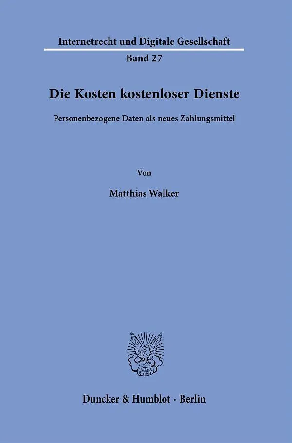 Verbraucher »bezahlen« für digitale Dienste zunehmend mit ihren personenbezogenen Daten. Verbraucher und Unternehmer partizipieren jedoch nicht gleichermaßen an der Wertschöpfung mit personenbezogenen Daten. Matthias Walker untersucht, wie dieser zuungunsten d...