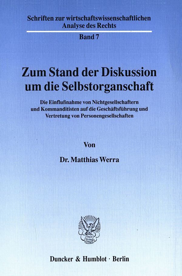 Zum Stand der Diskussion um die Selbstorganschaft.