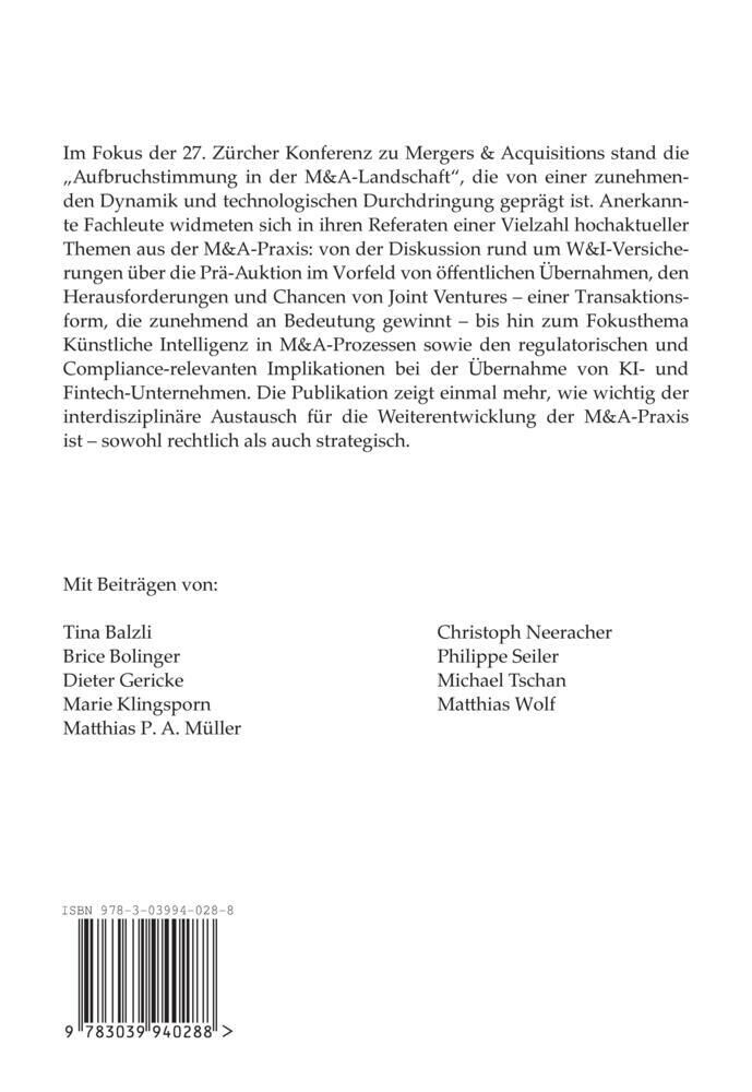 Im Fokus der 27. Zürcher Konferenz zu Mergers & Acquisitions stand die Aufbruchstimmung in der M&A-Landschaft, die von einer zunehmenden Dynamik und technologischen Durchdringung geprägt ist. Anerkannte Fachleute widmeten sich in ihren Referaten einer ...