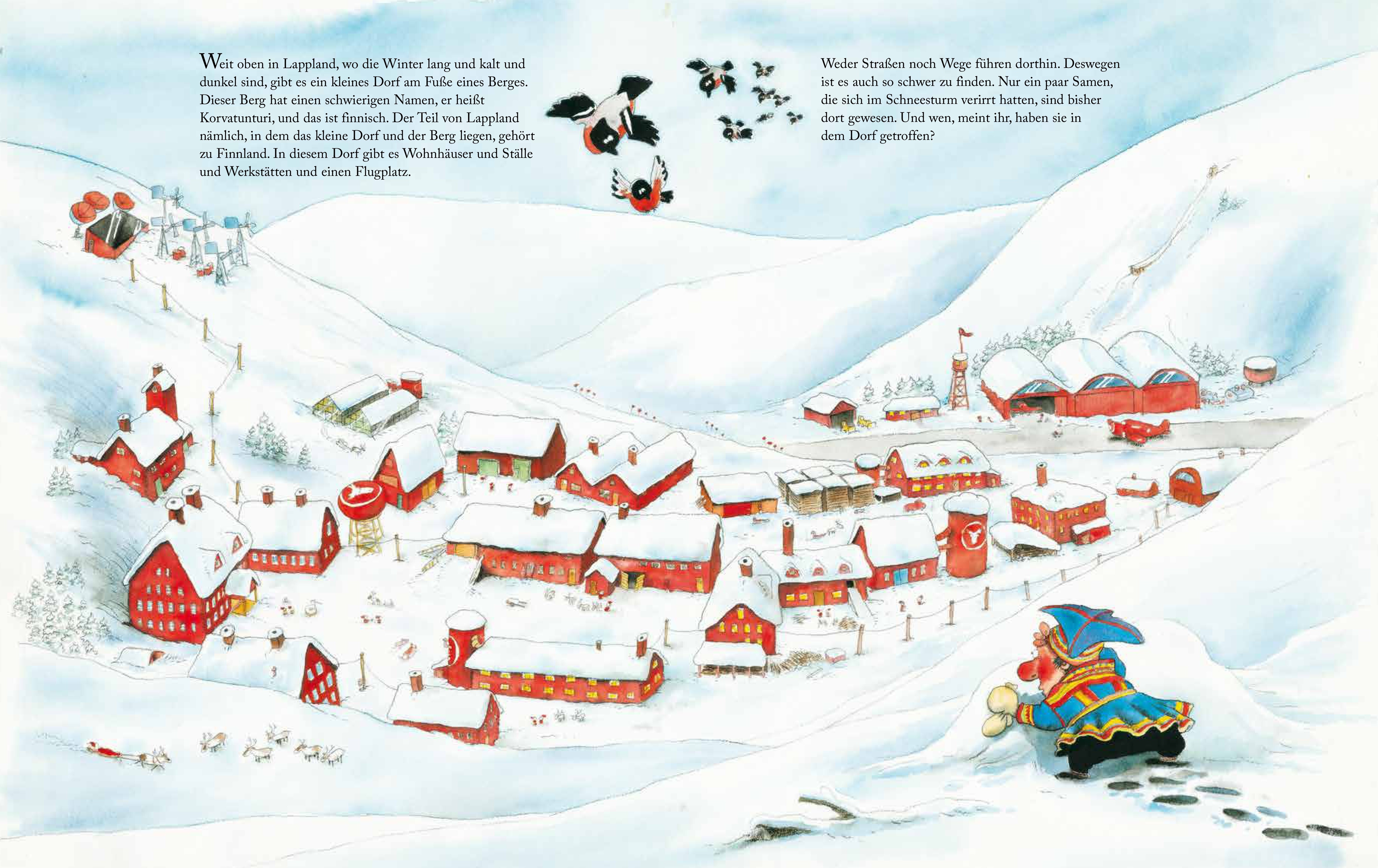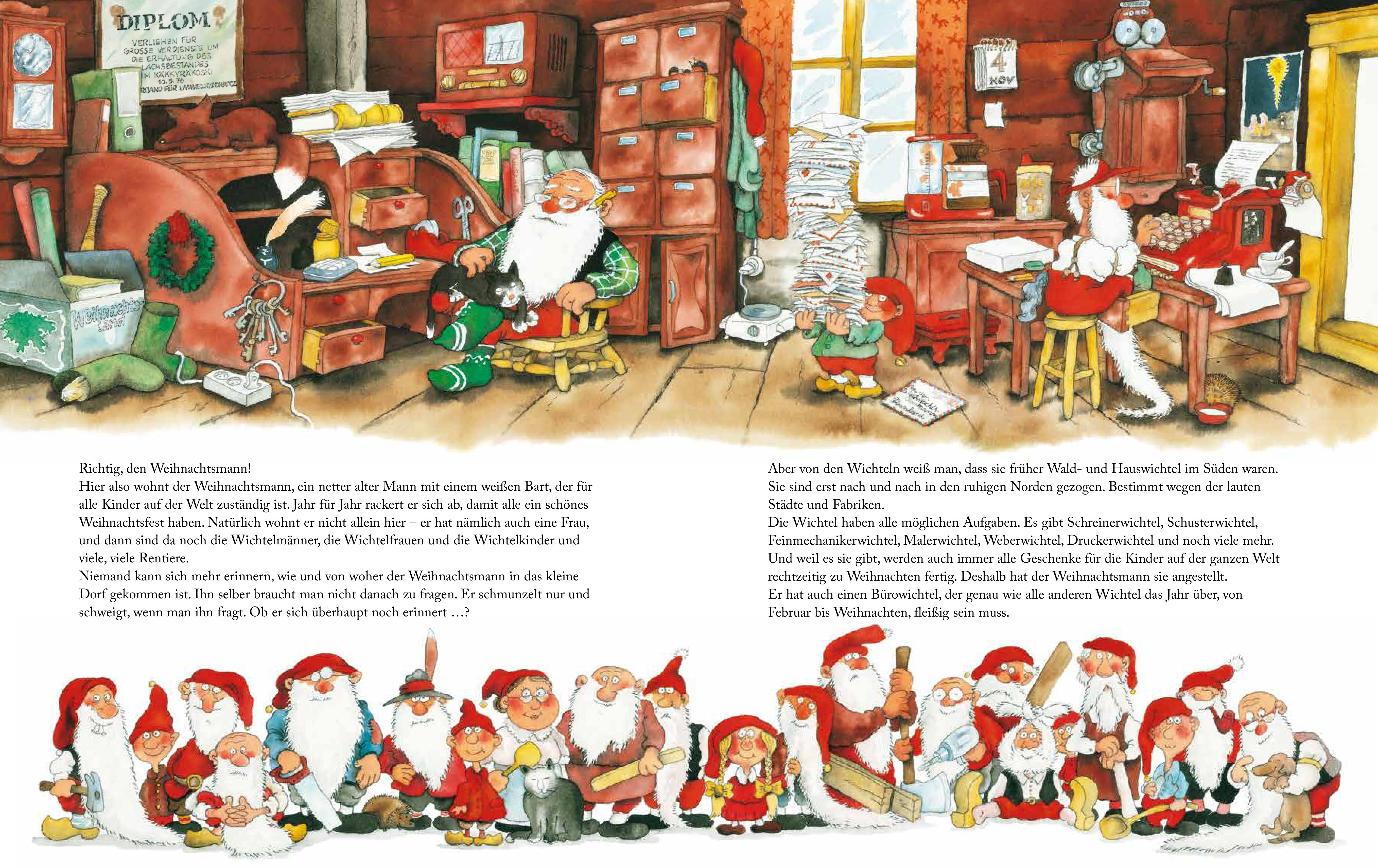 Weit oben in Lappland, wo die Winter lang und kalt und dunkel sind, liegt ein kleines Dorf, von dem wohl jedes Kind gern mehr erfahren möchte. Es ist das Dorf, in dem der Weihnachtsmann mit seinen Wichteln wohnt. Das ganze Jahr hindurch, von früh bis spät, wi...