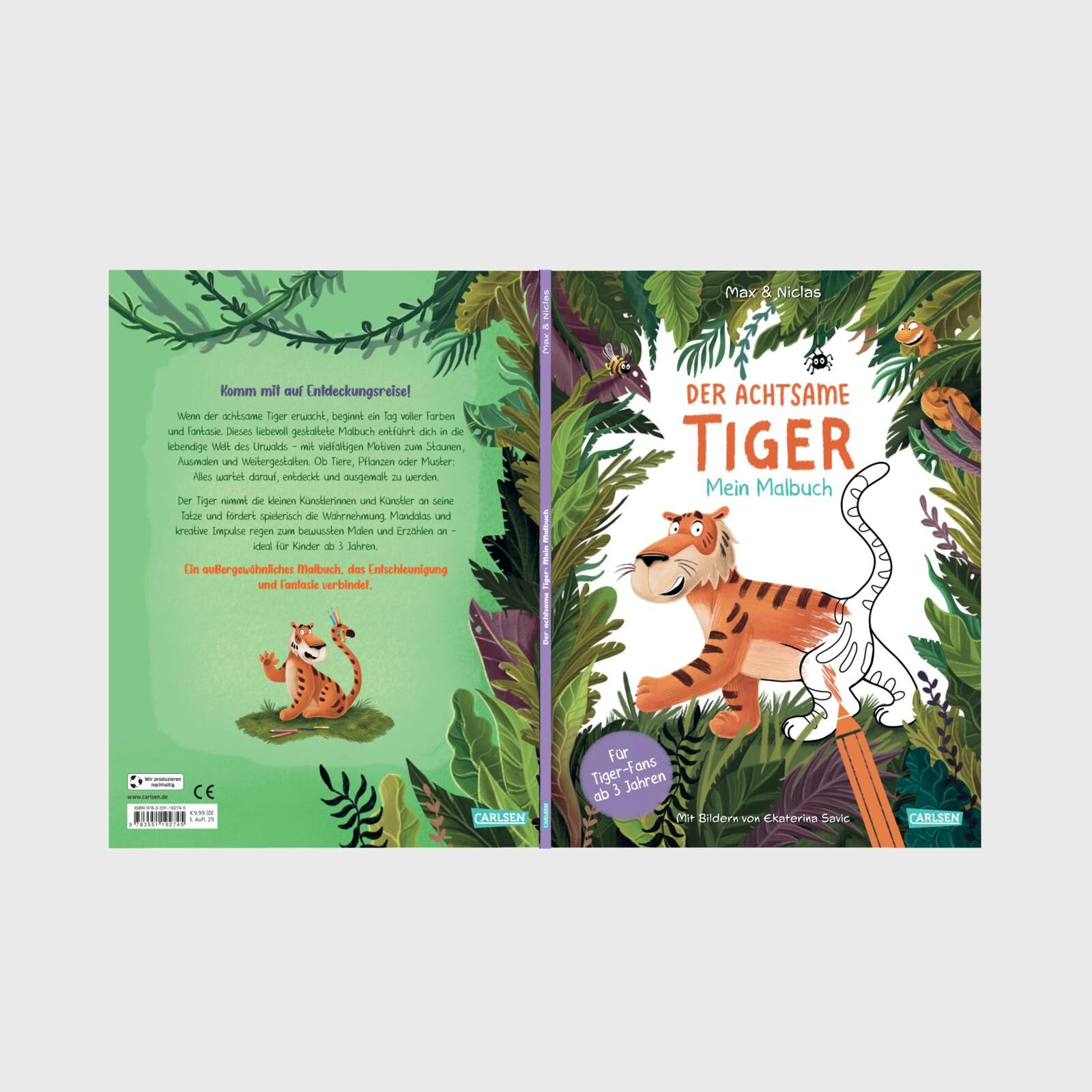 Ein Tag im Urwald mit dem achtsamen Tiger auf Entdeckungsreise Wenn der Tiger erwacht, beginnt ein Tag voller Farben und Fantasie. Dieses liebevoll gestaltete Malbuch entführt in die lebendige Welt des Urwalds mit vielfältigen Motiven, die zum Staunen, Ausmal...