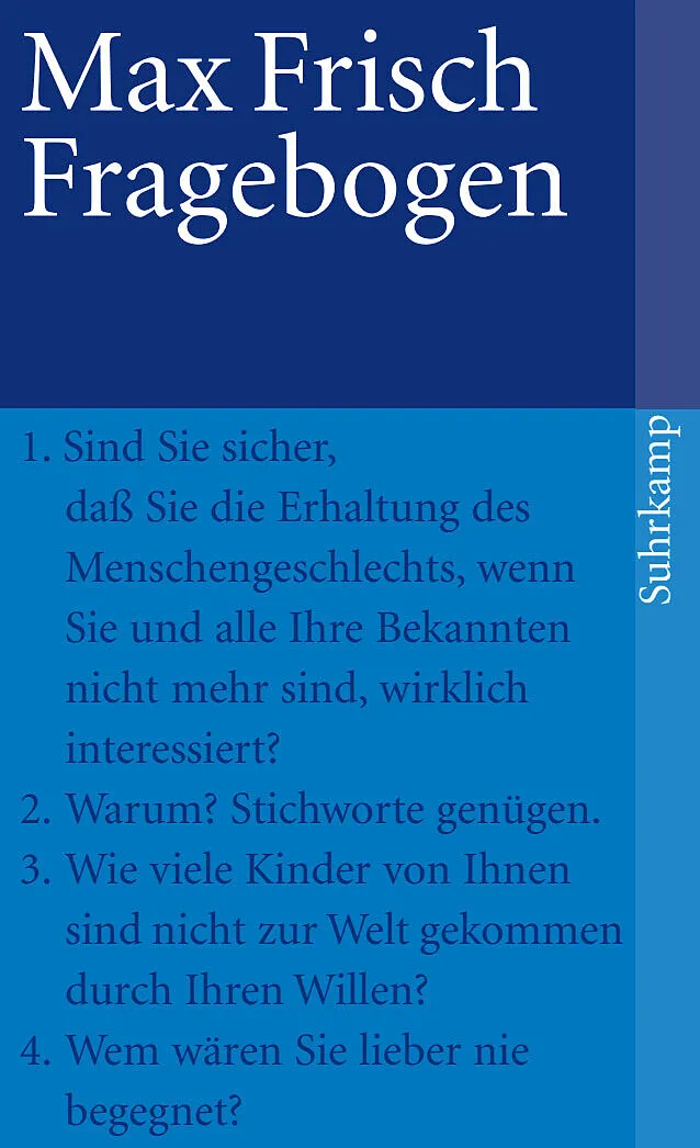"Halten Sie sich für einen guten Freund? Sind Sie sich selber ein Freund?" Zwischen diesen beiden Fragestellungen liegen 23 Fragen zum Thema Freundschaft. Die Antworten bleiben den Leserinnen und Lesern überlassen. Dieser und zehn weitere Fragebogen ...