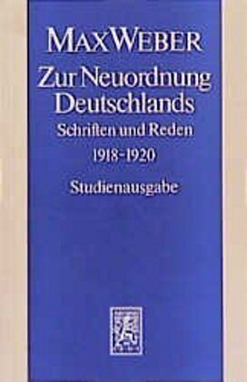 Beiträge zur Verfassungsfrage anläßlich der Verhandlungen im Reichsamt des Inneren vom 9. bis 12. Dezember 1918 - Deutschlands künftige Staatsform - Entwürfe für die Paragraphen 11 und 12 einer Verfassung des Deutschen Reiches - Erklärungen zum Scheitern der Kandidatur für die Wahlen zur Nationalversammlung im Wahlkreis 19 (Hessen-Nassau) - Der freie Volksstaat - Zum Thema "Kriegsschuld" - Zur einer Erklärung der Heidelberger Couleurstudenten - Diskussionsbeiträge anläßlich der Gründersitzung der "Arbeitsgemeinschaft für die Politik des Rechts (Heidelberger Vereinigung)" - Der gebundene Privatbesitz in der badischen Verfassung - Der Reichspräsident - Die Untersuchung der Schuldfrage - Die wirtschaftliche Zugehörigkeit des Saargebietes zu Deutschland - Unitarismus, Partikularismus und Föderalismus in der Reichsverfassung - Diskussionsbeiträge anläßlich der Beratungen im Auswärtigen Amt zur Vorbereitung der Friedensverhandlungen, 29. März und 2. April 1919 - Sachliche (angeblich: "politische") Bemerkungen am 19.1.1920 zum Fall Arco - Erklärung zum Fall Arco am 23. Januar1920 - Stellungnahme zu Äußerungen des bayerischen Ministerpräsidenten von Kahr Ia. Beiträge zur amtlichen Politik in der Kriegsschuldfrage Bemerkungen zum Verzicht der Kommission der alliierten und assoziierten Regierungen über die Verantwortlichkeit der Urheber des Krieges - Der verstümmelte Bericht des Herrn von Schoen. Eine Erklärung der deutschen Viererkomission II. Berichte über Reden und Diskussionsbeiträge Deutschlands politische Neuordnung - Die zukünftige Staatsform Deutschlands - Das neue Deutschland - Der Wiederaufbau der deutschen Wirtschaft - Deutschlands Lage - Deutschlands Wiederaufrichtung - Diskussionsbeitrag zur Rede des badischen Justizministers Ludwig Marum über "Das neue Deutschland und seine Zukunft" am 3. Januar 1919 in Heidelberg - Deutschlands Vergangenheit und Zukunft - Die kommende Reichsverfassung - Probleme der Neuordnung - Der freie Volksstaat - Die gegenwärtige Lage der Deutschen Demokratischen Partei - Student und Politik - Zeugenaussage im Prozeß gegen Ernst Troller - Zeugenaussage im Prozeß gegen Otto Neurath Anhang I: Mitunterzeichnete Aufrufe und öffentliche Erklärungen Anhang II: Aufzeichnungen über eine Unterredung mit Erich Ludendorff Anhang III: Nachgewiesene aber nicht überlieferte Schriften und Reden Personenverzeichnis - Verzeichnis der von Max Weber zitierten Literatur - Verzeichnis der als Varianten zum Edierten Text berücksichtigten Textfassungen - Personenregister - Sachregister - Seitenkonkordanzen - Aufbau und Editionsregeln der Max-Weber-Gesamtausgabe, Abteilung I: Schriften und Reden