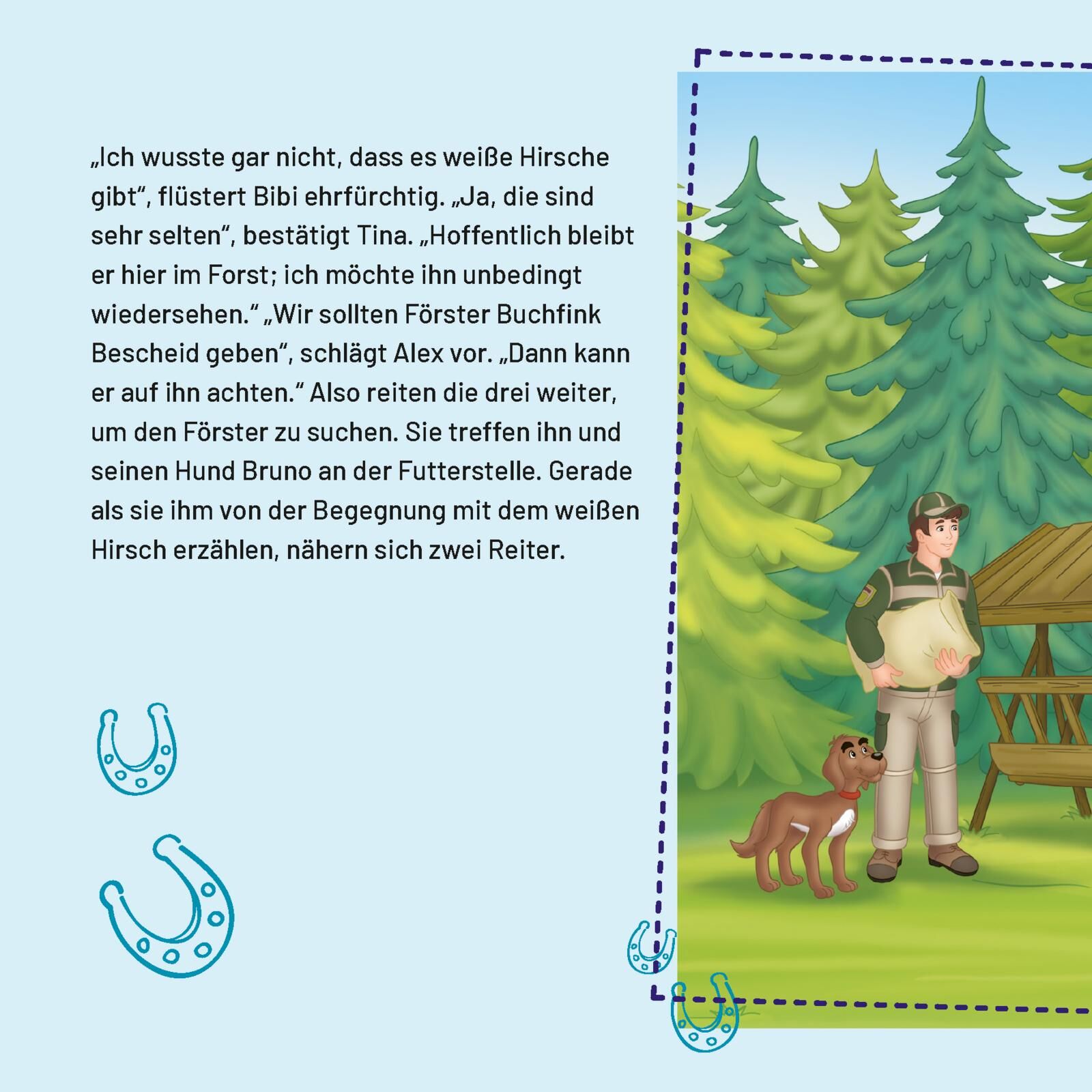 Bibi, Tina und Alexander treffen im Falkensteiner Forst auf einen weißen Hirsch. Sie sind fasziniert von dem seltenen Tier. Auch Professor Oberholz, ein Gast des Grafen, scheint sich für den Hirsch zu interessieren, obwohl er eigentlich über die Wildpferde vo...