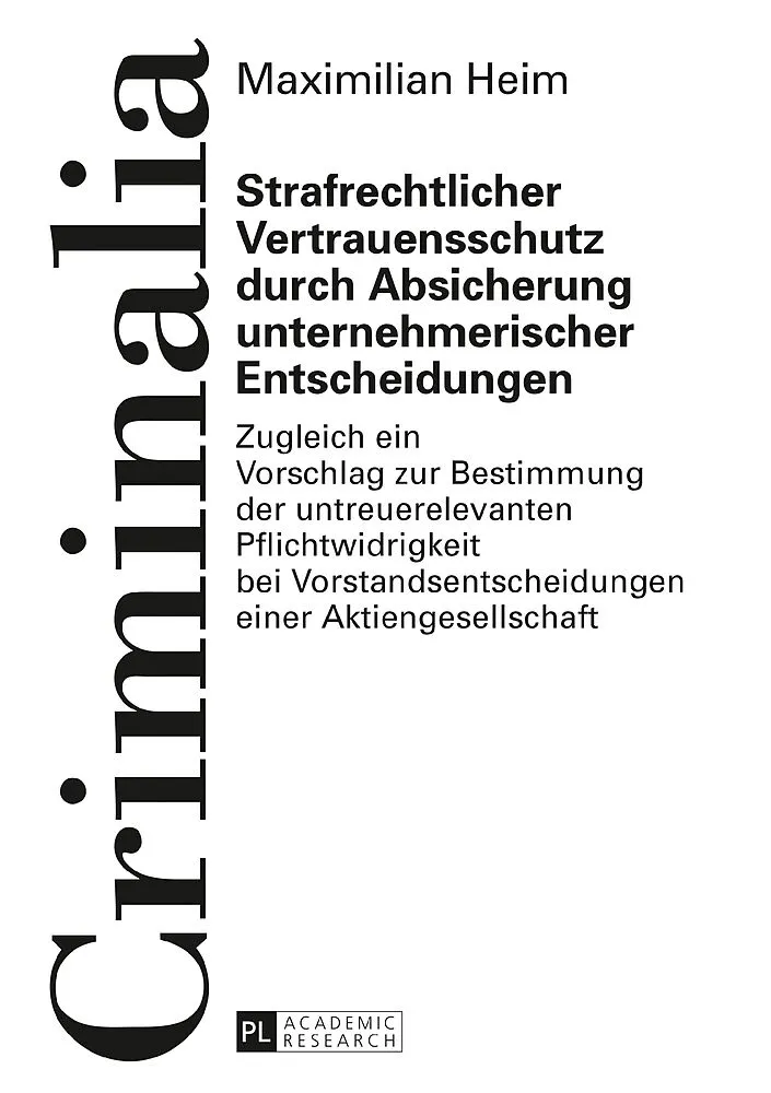 Im Fokus des Buches steht das nach wie vor ungeklärte und aktuelle Problem, inwiefern bei unternehmerischen Entscheidungen der Vorstandsmitglieder einer Aktiengesellschaft ein für das Strafrecht wirksamer Vertrauensschutz entstehen kann, der insbesondere die ...