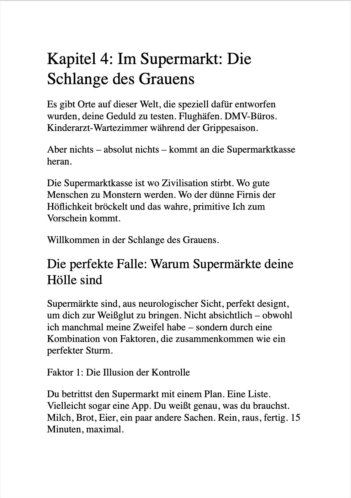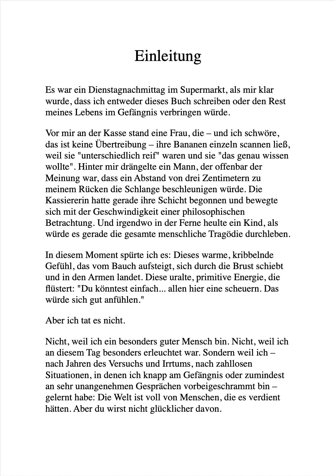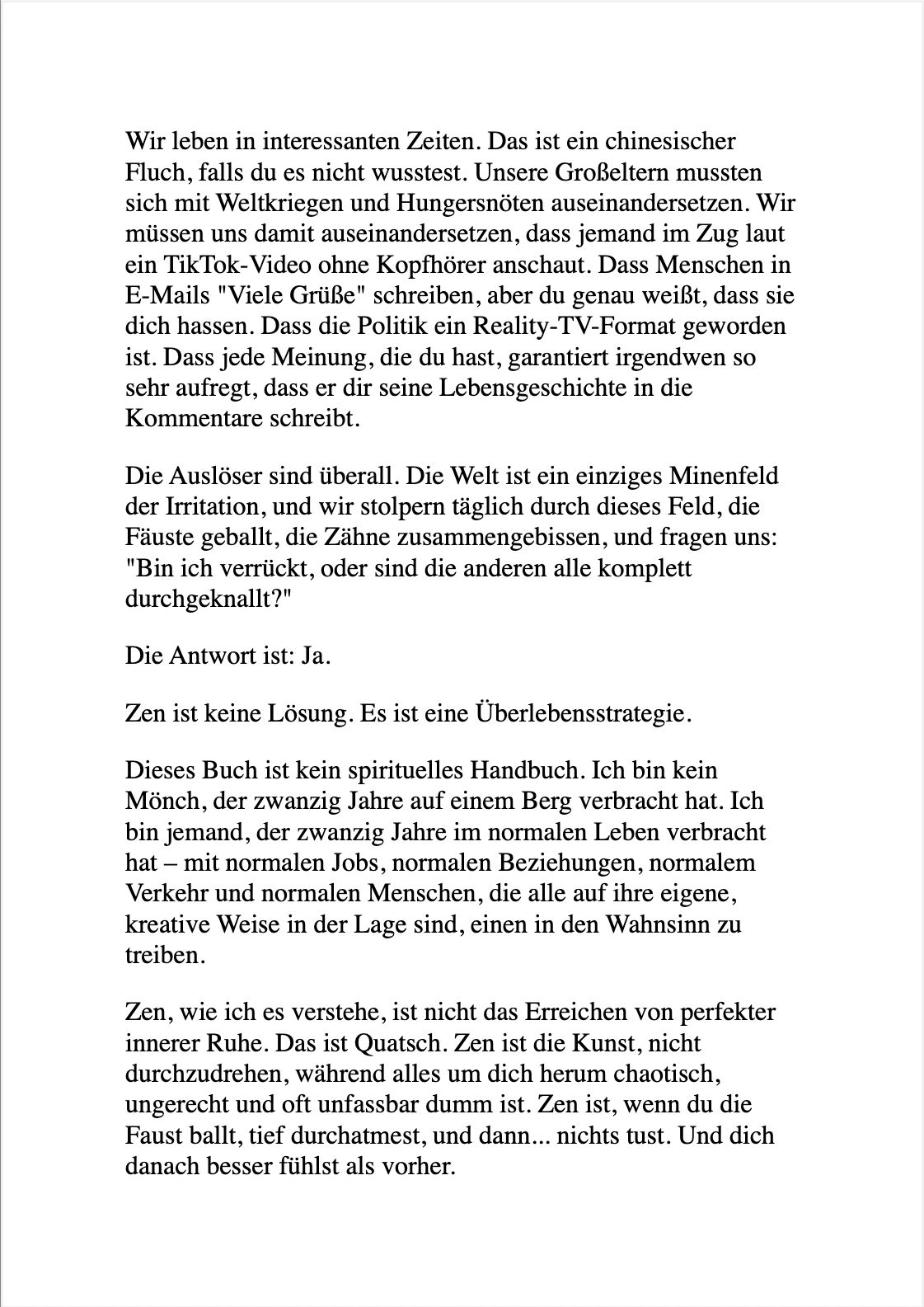Du willst niemandem auf die Schnauze hauen. Aber manchmal macht es dir die Welt wirklich schwer. Supermarktschlangen, Meetings, Straßenverkehr, Social Media, Familie. Überall Menschen. Überall Trigger. Überall diese eine Stimme im Kopf, die flüstert: Nur ein k...26 Kunden haben diesen Artikel kürzlich gekauft.