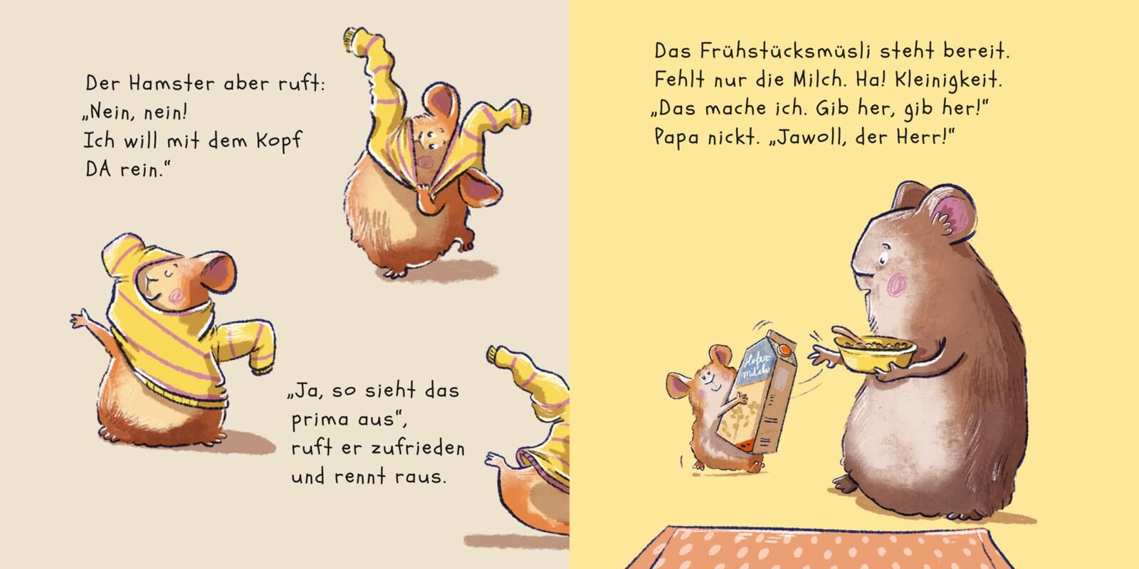 Echter Kleinkindalltag: Ein liebenswertes unkaputtbares Bilderbuch über ein Thema, das alle Familien kennen Der kleine Hamster kann schon ganz viel. Eigentlich alles. Anziehen, Milch eingießen, Einkaufswagen schieben? Kinderspiel. Und darum gibt es heute Müsl...