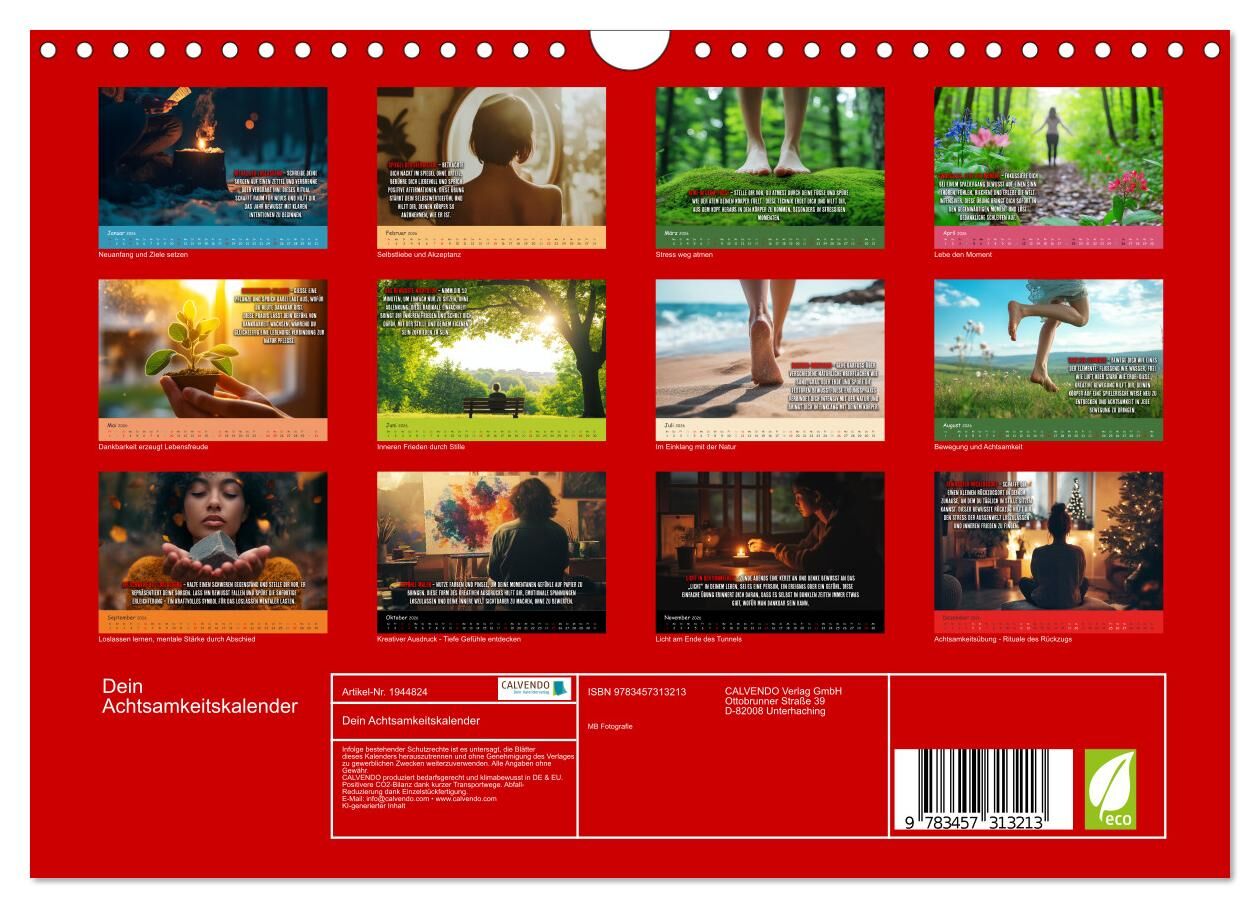 Achtsamkeit und Anti-Stress im Alltag - dieser Achtsamkeitskalender für Erwachsene schenkt dir jeden Monat eine wohltuende Übung für mehr innere Ruhe, Lebensfreude und Körperwahrnehmung. Ideal zur Burnout-Prävention und für ein bewussteres Leben: Die Achtsamke...