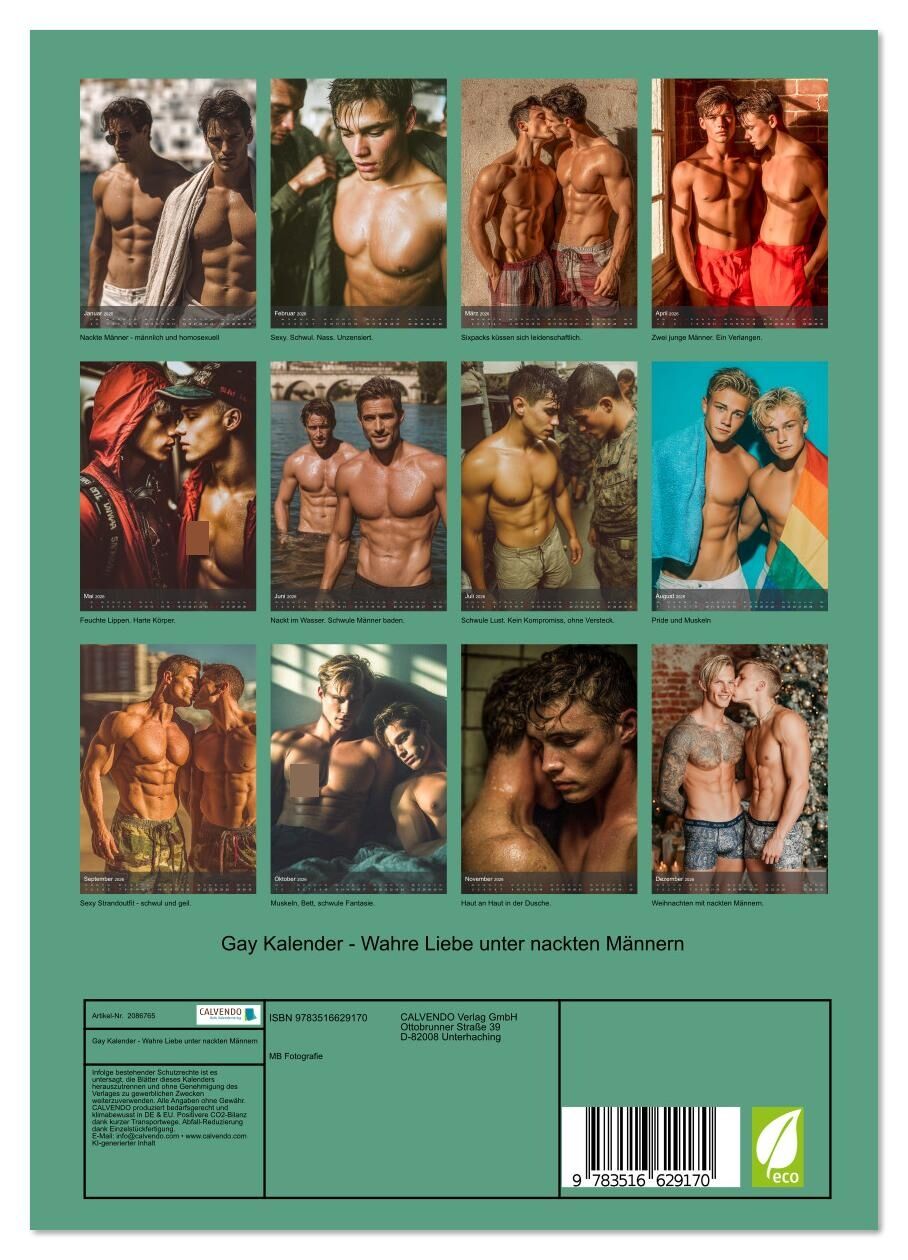 Entdecke pure schwule Erotik mit dem schwulen Mann von nebenan - vollgepackt mit nackten, sexy Männern, starken Muskeln und Sixpack pur. Dieser unzensierte Kalender für Schwule zeigt jeden Monat heiße schwule Männer in leidenschaftlichen Posen - nackt, sinnlic...