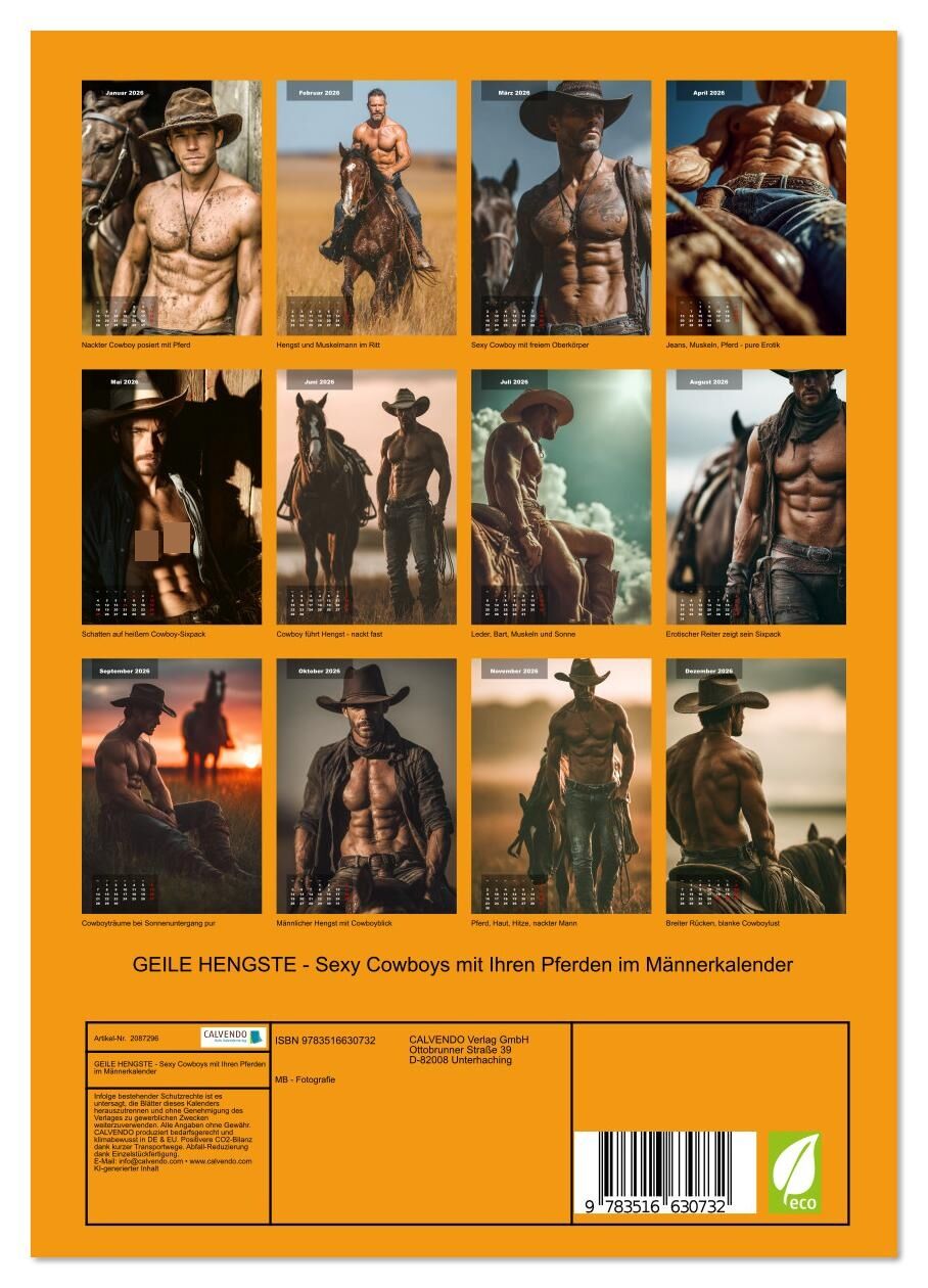 Sexy Cowboy Kalender: Entdecke pure Erotik mit diesem einzigartigen Erotik-Kalender voller nackter Cowboys, muskulöser Männer und wilder Hengste. Heiße Männer mit Bart, Hut und Sixpack zeigen sich unzensiert mit ihren Pferden - sexy, männlich und verführerisch...