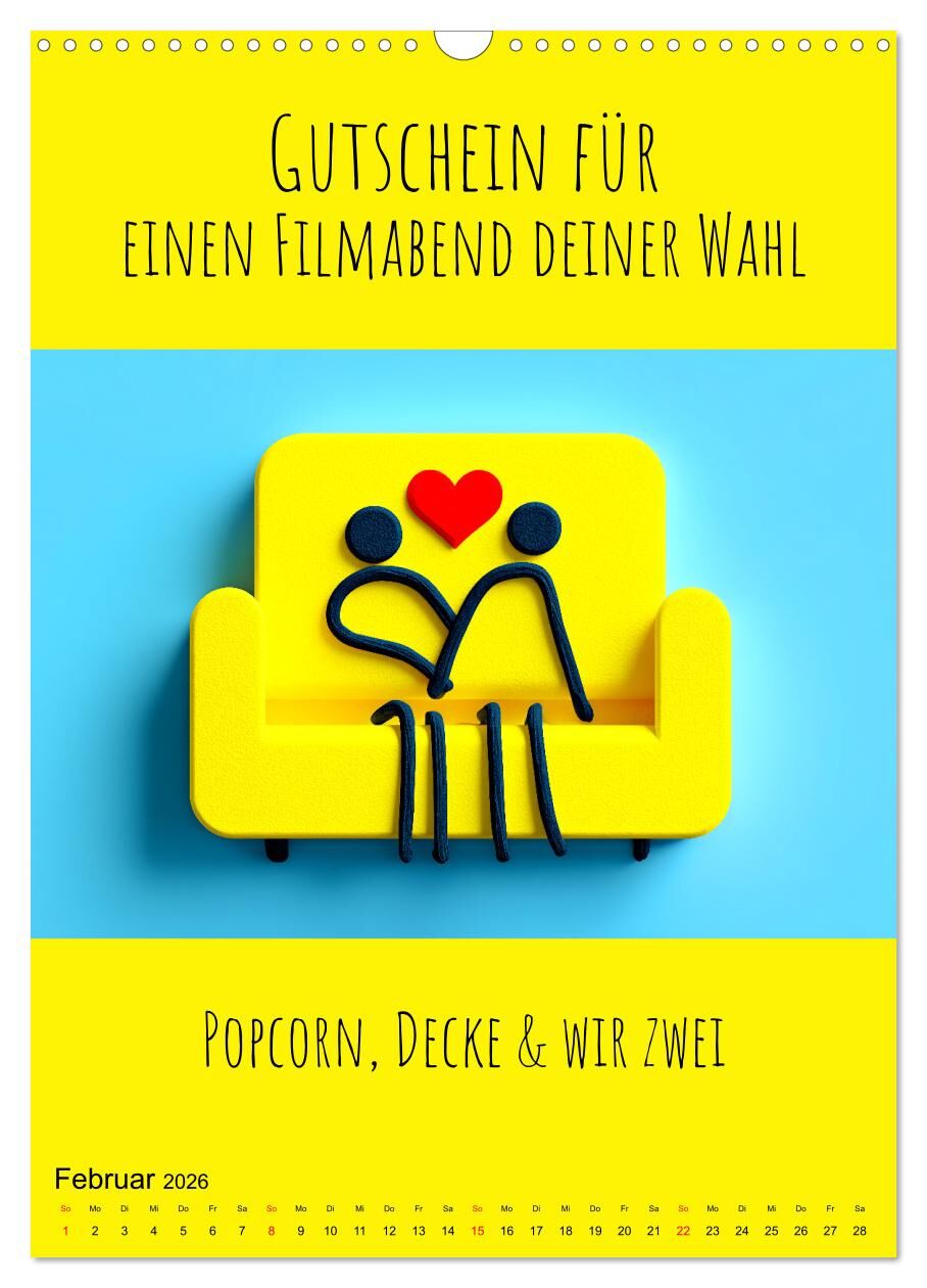 Gutscheinkalender - Gutschein Karten als Geschenk der Liebe (Wandkalender 2026 DIN A3 hoch), CALVENDO Monatskalender