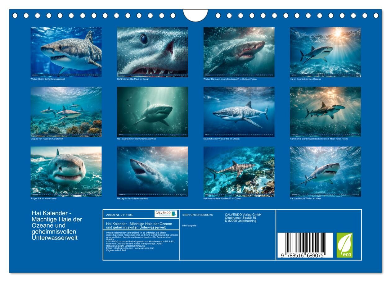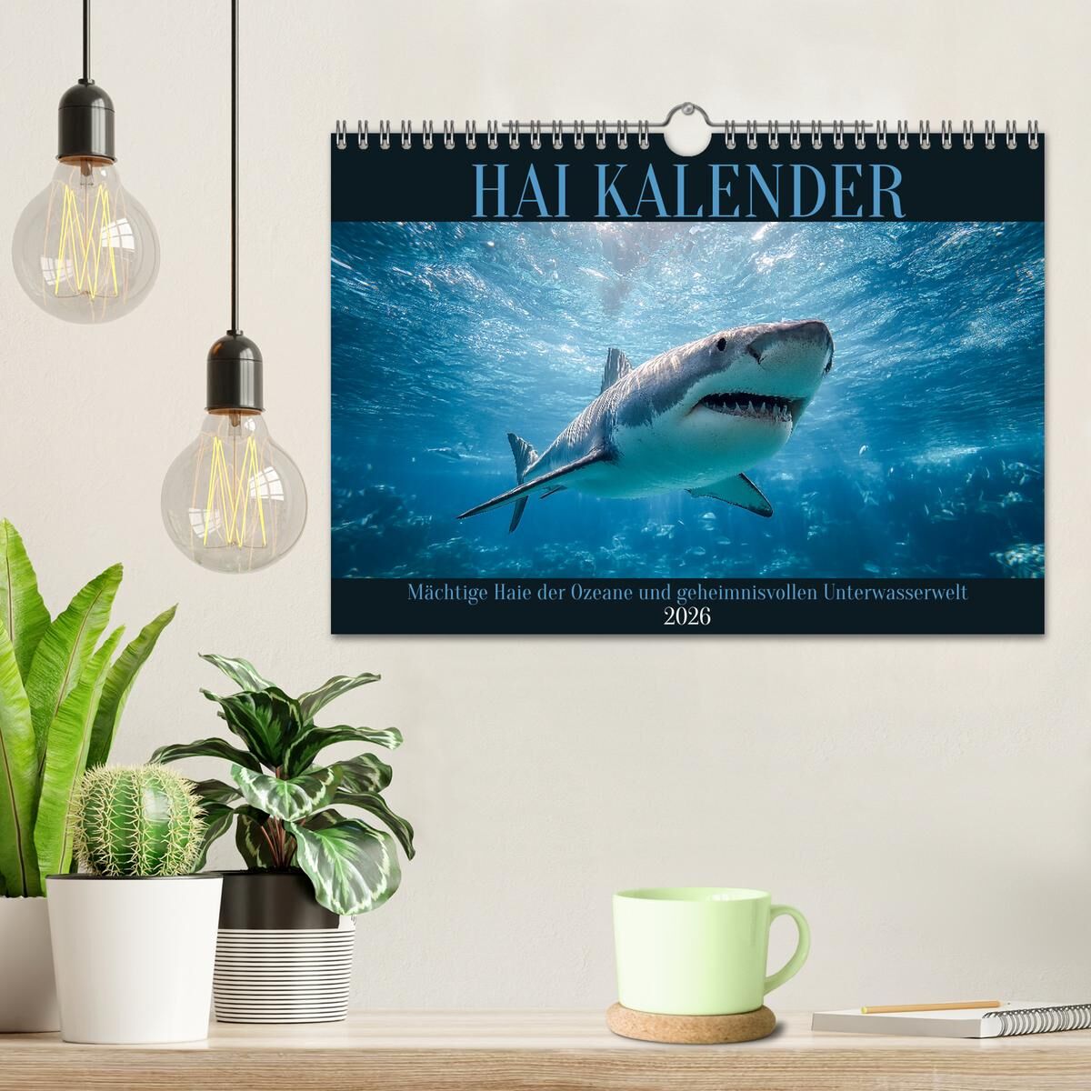 Hai Kalender - Mächtige Haie der Ozeane und geheimnisvollen Unterwasserwelt (Wandkalender 2026 DIN A4 quer), CALVENDO Monatskalender
