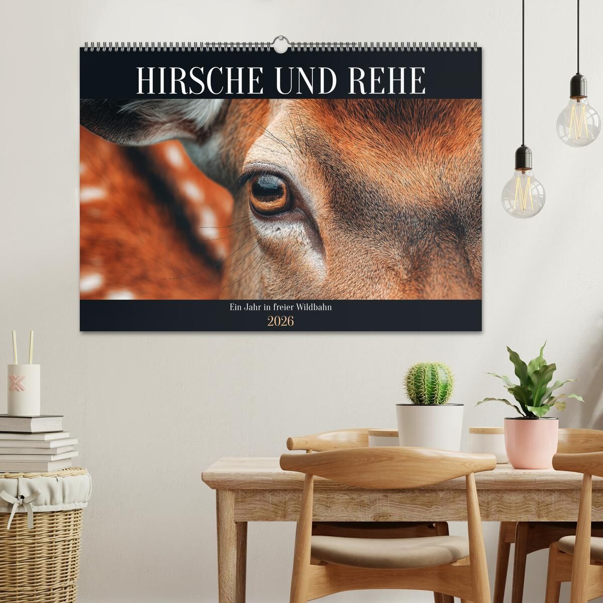 HIRSCHE UND REHE - Ein Jahr in freier Wildbahn (Wandkalender 2026 DIN A2 quer), CALVENDO Monatskalender