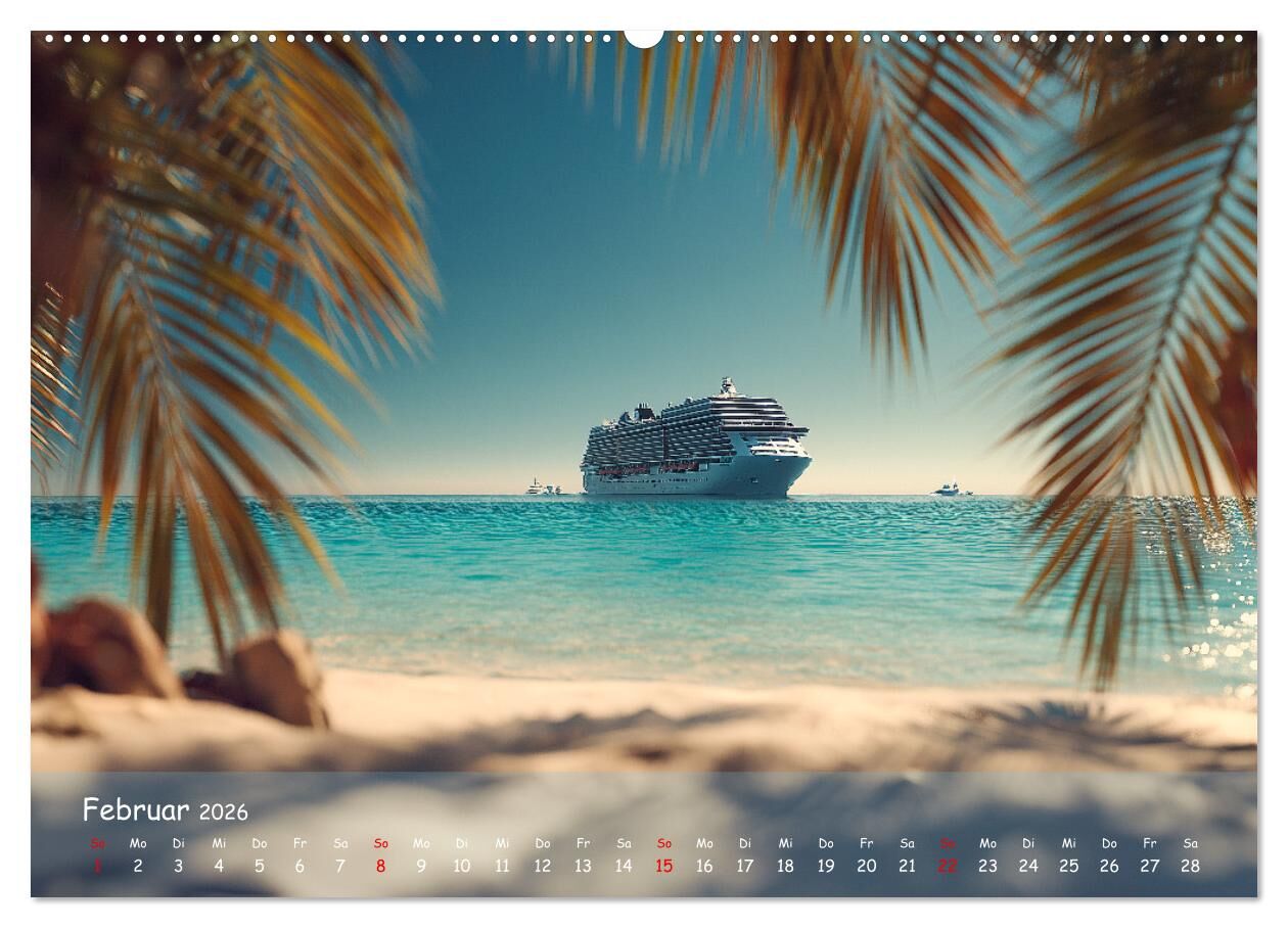 Entdecke die Faszination der Giganten der Meere mit diesem einzigartigen Kreuzfahrtschiff Kalender. Monat für Monat erwarten dich beeindruckende Aufnahmen von Kreuzfahrtschiffen - mal majestätisch auf dem offenen Meer, mal elegant im Hafen oder vor exotischen ...