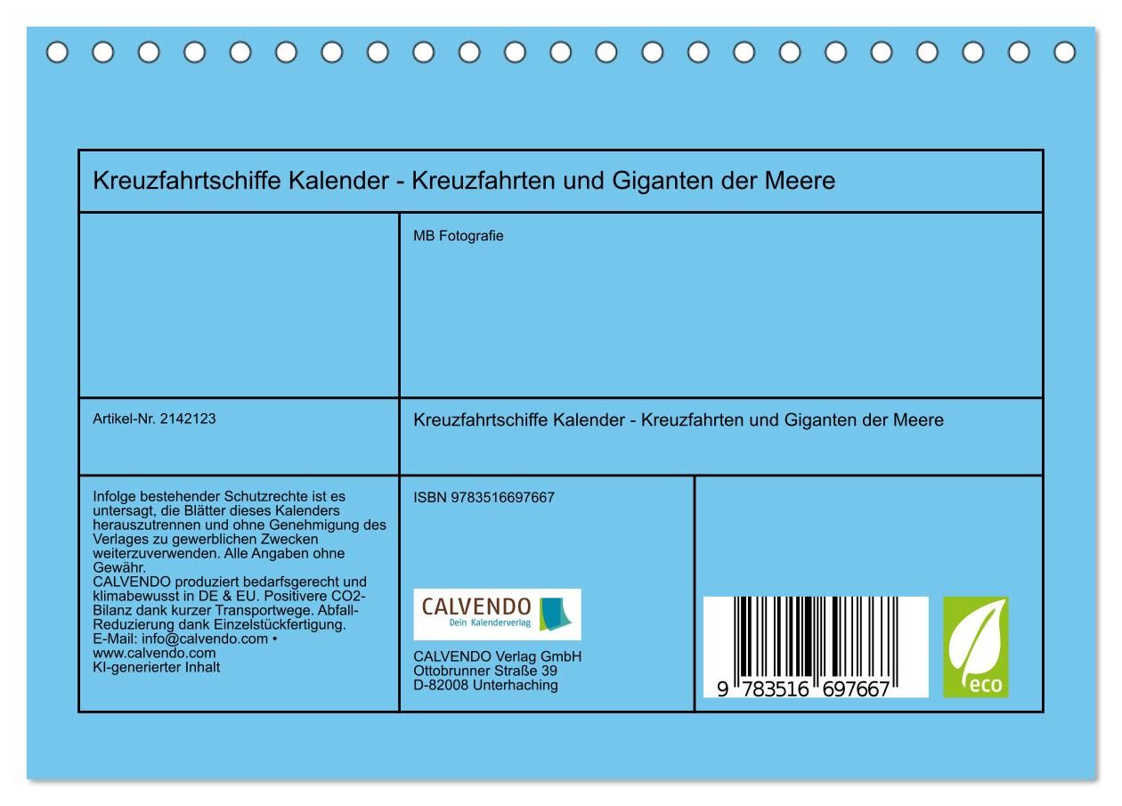 Entdecke die Faszination der Giganten der Meere mit diesem einzigartigen Kreuzfahrtschiff Kalender. Monat für Monat erwarten dich beeindruckende Aufnahmen von Kreuzfahrtschiffen - mal majestätisch auf dem offenen Meer, mal elegant im Hafen oder vor exotischen ...