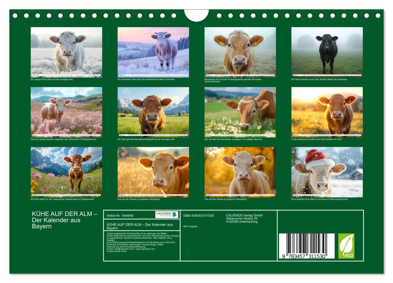 Erlebe die Schönheit bayerischer Almen mit eindrucksvollen Bildern von Kühen, Rindvieh und Milchkühen, umgeben von idyllischen Weiden und majestätischen Bergen. Dieser Kalender zeigt die unverwechselbare Landschaft Bayerns, einschließlich vom malerischen Allgä...