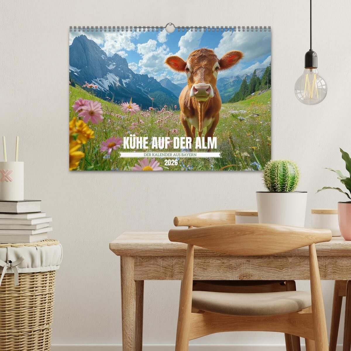 KÜHE AUF DER ALM Der Kalender aus Bayern (Wandkalender 2026 DIN A3 quer), CALVENDO Monatskalender