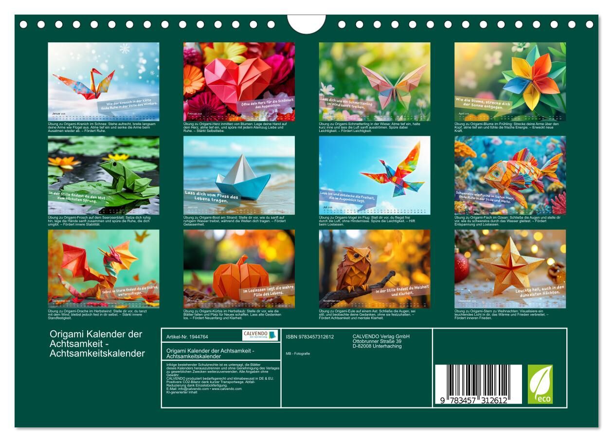 Origami Kalender der Achtsamkeit - Achtsamkeitskalender (Wandkalender 2026 DIN A4 quer), CALVENDO Monatskalender