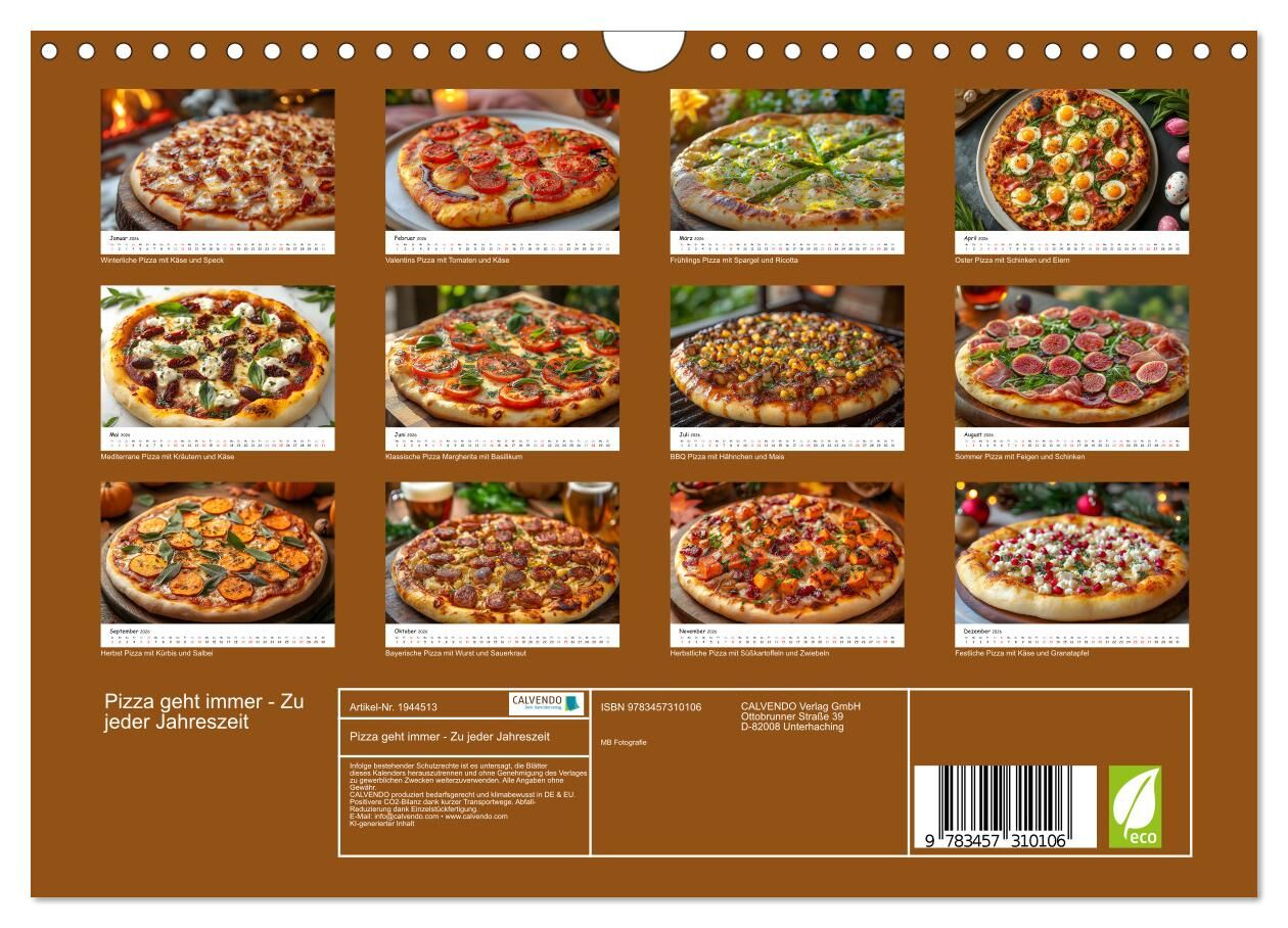 Pizza geht immer - Zu jeder Jahreszeit (Wandkalender 2026 DIN A4 quer), CALVENDO Monatskalender