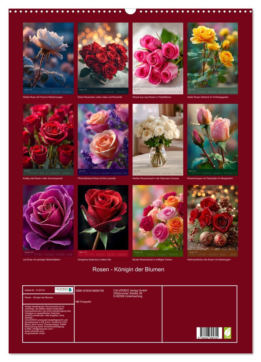 Rosen - Königin der Blumen (Wandkalender 2026 DIN A2 hoch), CALVENDO Monatskalender