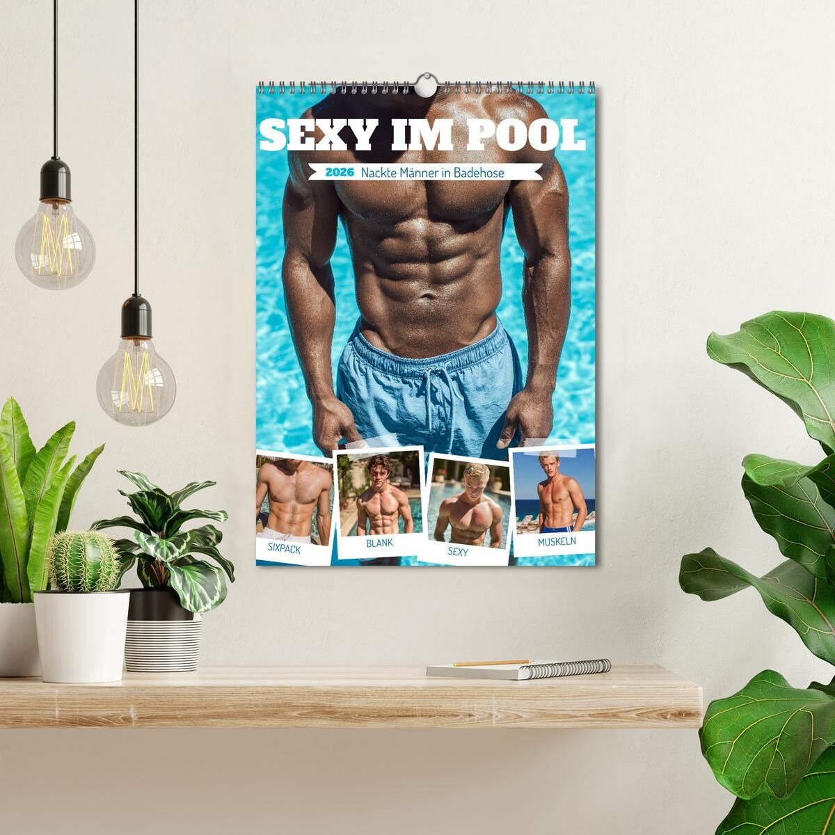 Sexy im Pool - Nackte Männer in Badehose (Wandkalender 2026 DIN A3 hoch), CALVENDO Monatskalender