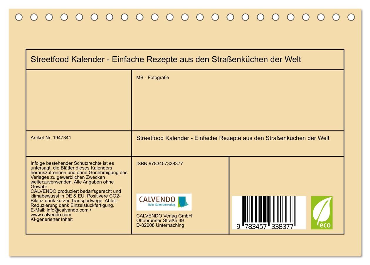 Streetfood Kalender - Einfache Rezepte aus den Straßenküchen der Welt (Tischkalender 2026 DIN A5 quer), CALVENDO Monatskalender