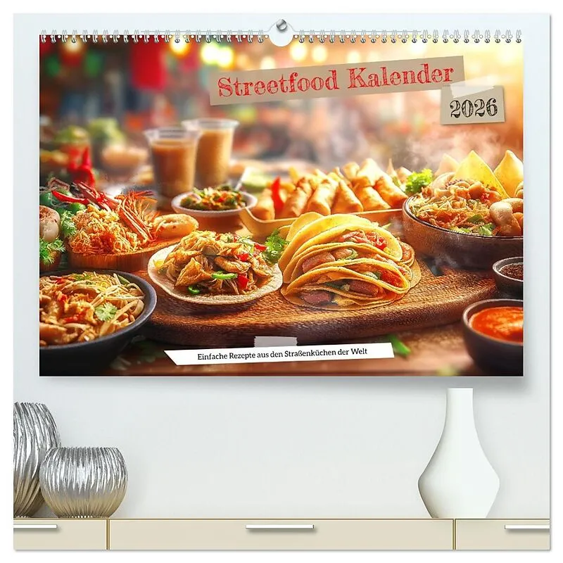 Streetfood Kalender - Einfache Rezepte aus den Straßenküchen der Welt (hochwertiger Premium Wandkalender 2026 DIN A2 quer), Kunstdruck in Hochglanz
