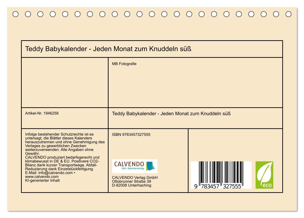 Süße Plüschbären für das Kinderzimmer: Dieser liebevoll gestaltete Kalender für Kinder zeigt Teddybären und Kuscheltiere als Bär in herzerwärmenden Szenen - perfekt für Babys und Kinder. Ob beim Spielen, Schlafen oder Entdecken - jeder Teddy, Bär und Plüschbär...
