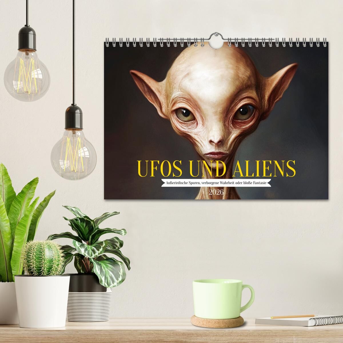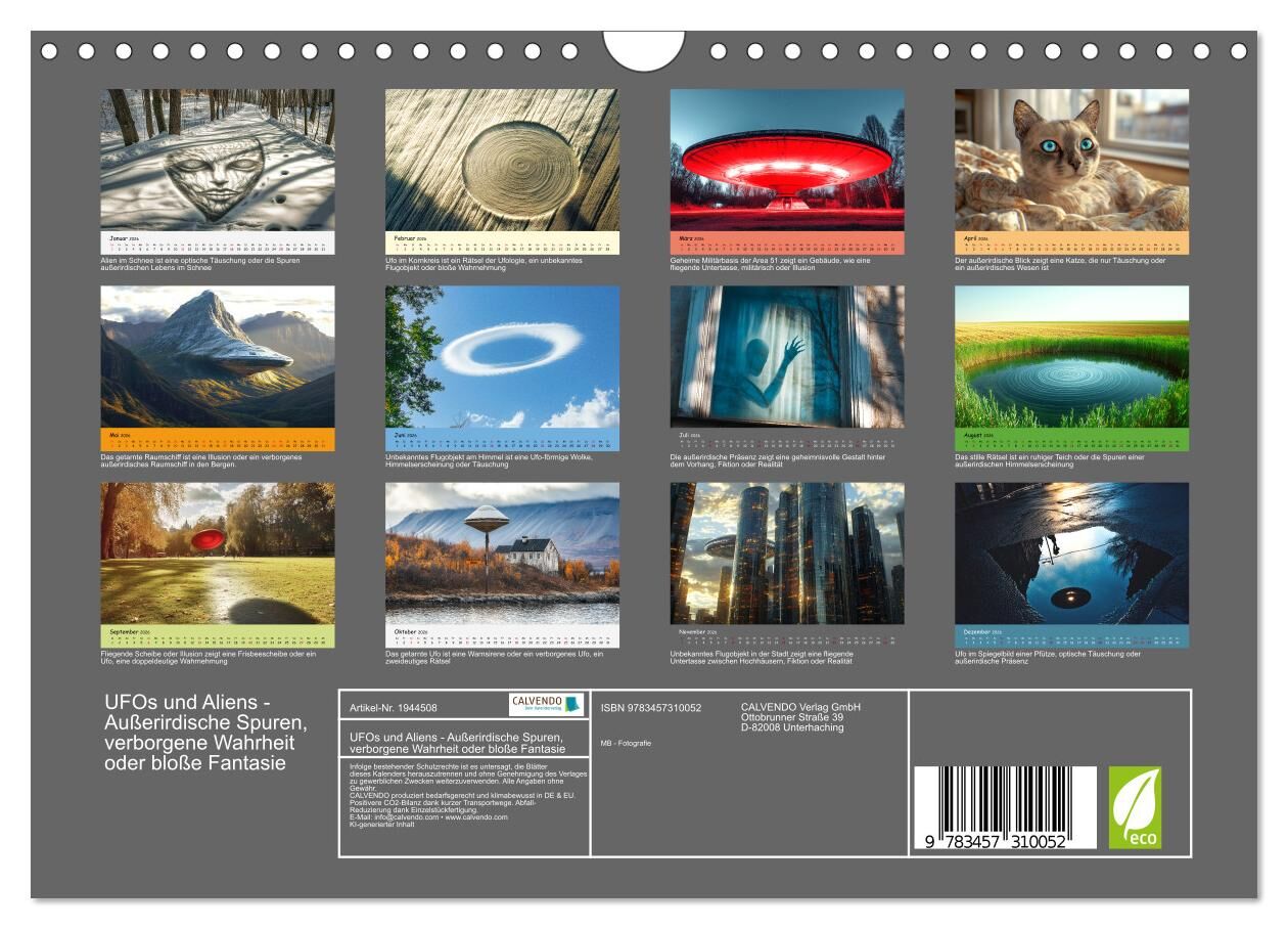 Aliens und Ufos gibt es Sie wirklich? Alien Kalender - entdecke eine geheimnisvolle Reise durch das Universum voller Außerirdischer, UFOs, fliegender Untertassen und rätselhafter Erscheinungen. Dieser außergewöhnliche Sci-Fi Kalender zeigt mysteriöse UFO-Bilde...