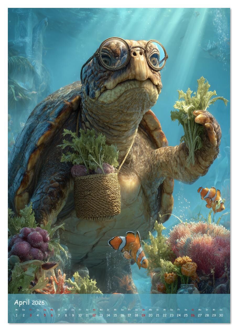 UNTERWASSER läuft der Laden - lustige Meerestiere im Alltag (hochwertiger Premium Wandkalender 2026 DIN A2 hoch), Kunstdruck in Hochglanz