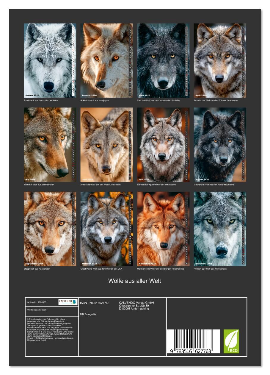 Wölfe aus aller Welt (Wandkalender 2026 DIN A4 hoch), CALVENDO Monatskalender
