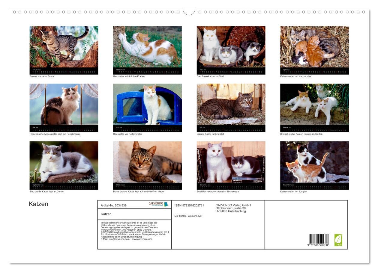 Katzen - das mit Abstand liebste Haustier in einem Kalender von Werner Layer. Katzen - das mit Abstand liebste Haustier in einem Kalender von Werner Layer. Hochwertiger Wandkalender mit 12 wunderschönen Bildern. Unsere Umwelt liegt uns am Herzen. Daher verwend...