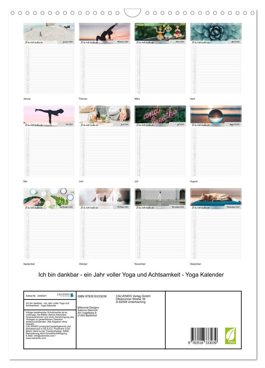 Ich bin dankbar - ein Jahr voller Yoga und Achtsamkeit - Yoga Kalender (Wandkalender 2026 DIN A3 hoch), CALVENDO Monatskalender