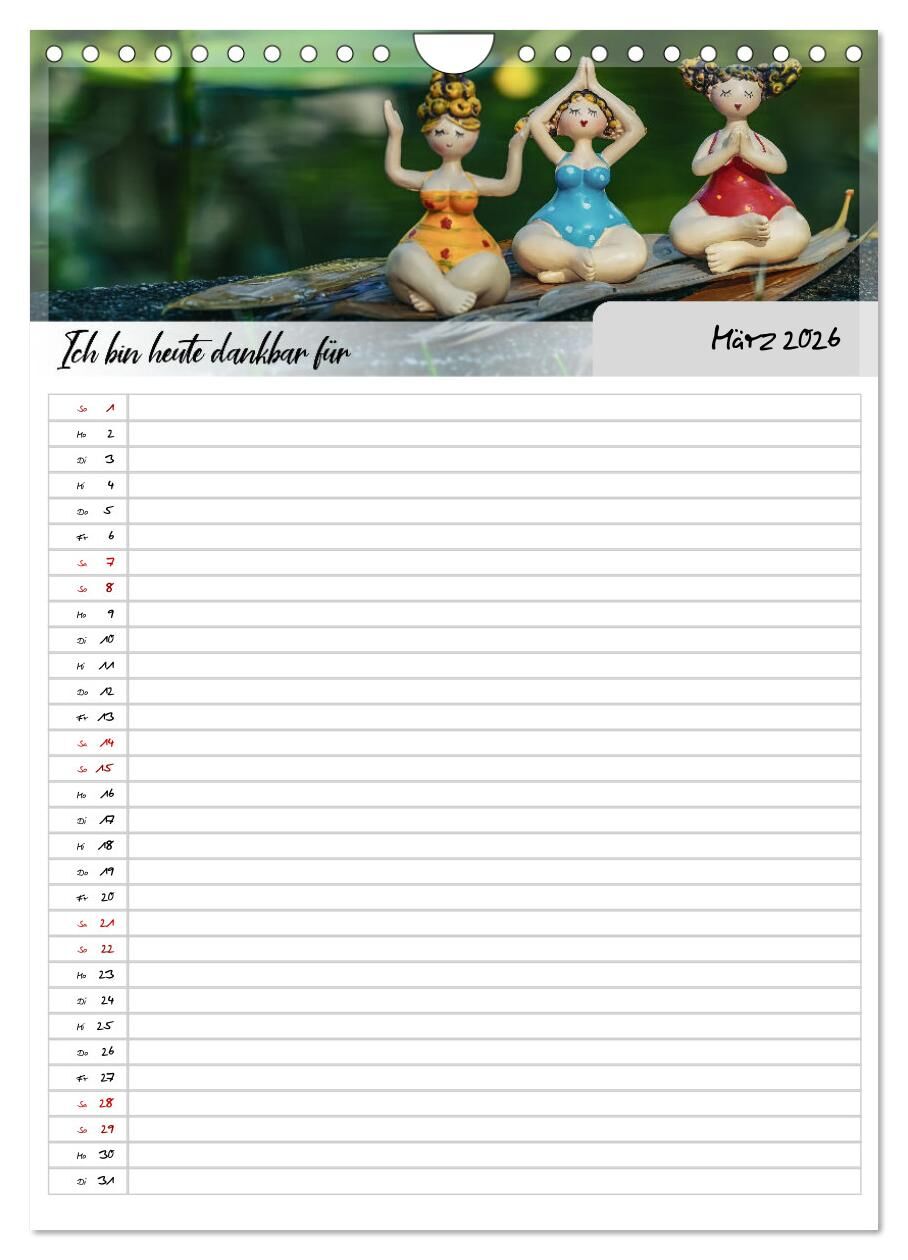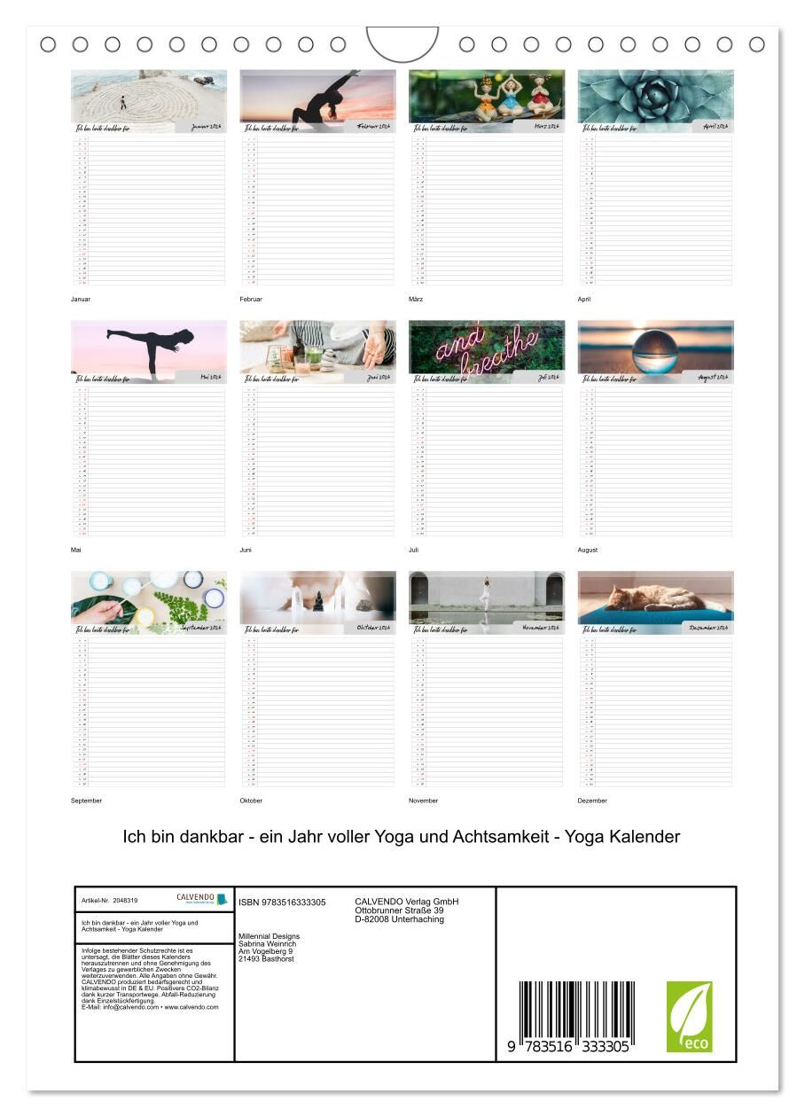Ich bin dankbar - ein Jahr voller Yoga und Achtsamkeit - Yoga Kalender (Wandkalender 2026 DIN A4 hoch), CALVENDO Monatskalender